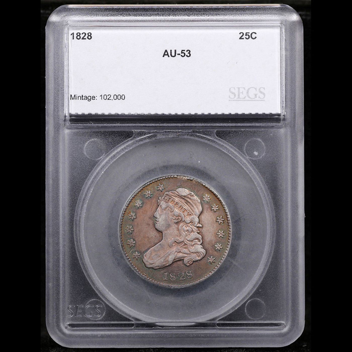 ***Auction Highlight*** 1828 Capped Bust Quarter 25c Graded au53 By SEGS. A Corey's Pick, Bid to Win Coin