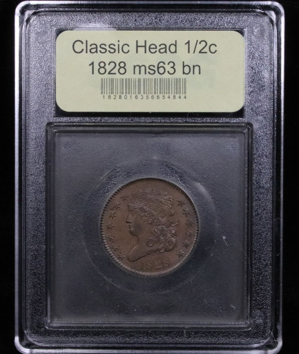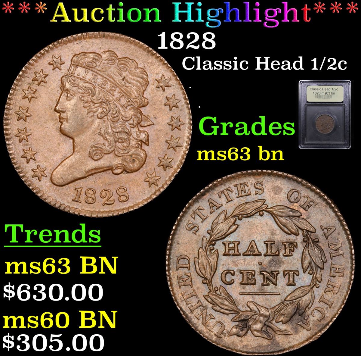 ***Auction Highlight*** 1828 . . Classic Head half cent 1/2c Graded Select Unc BN By USCG. A Corey's Pick, Bid to Win Coin