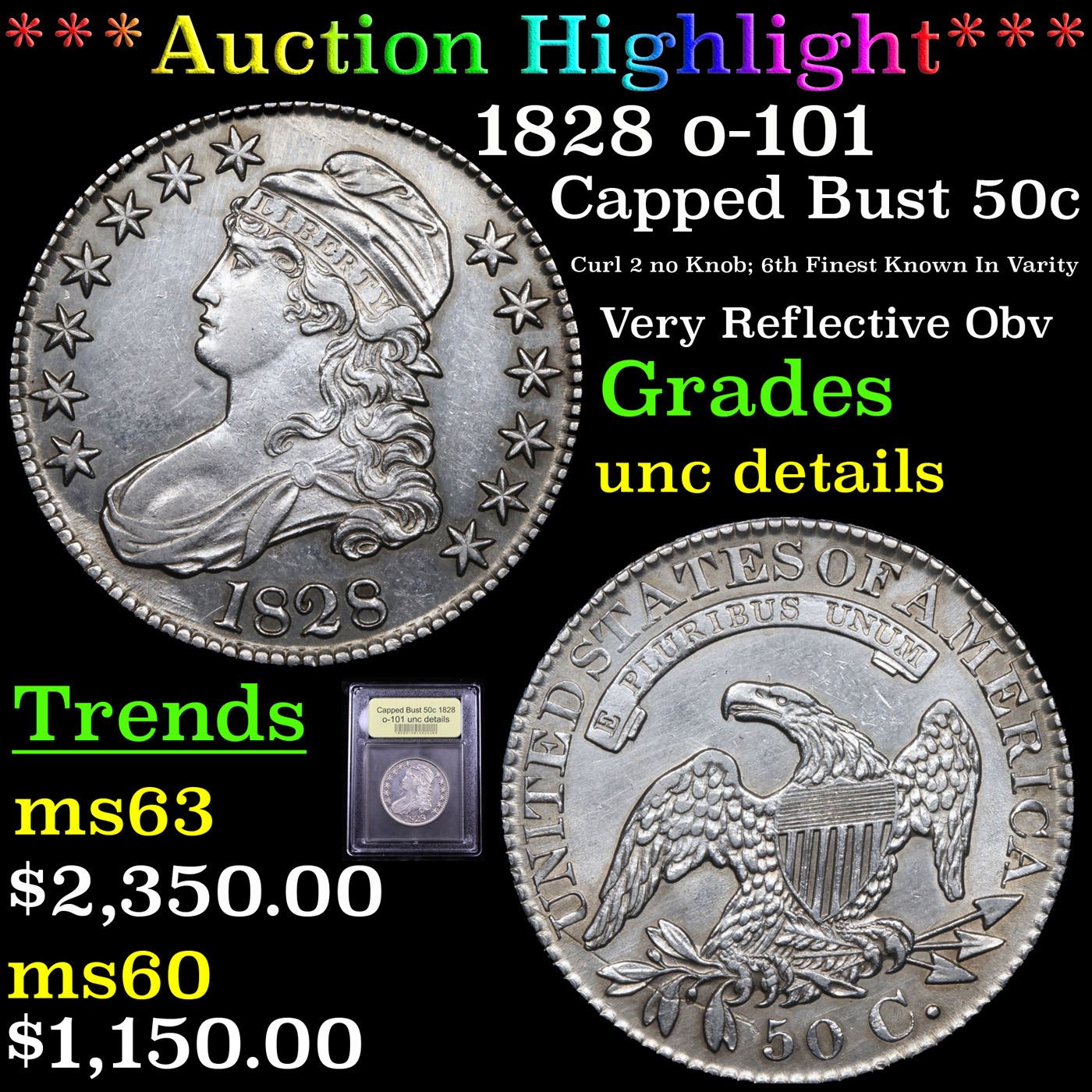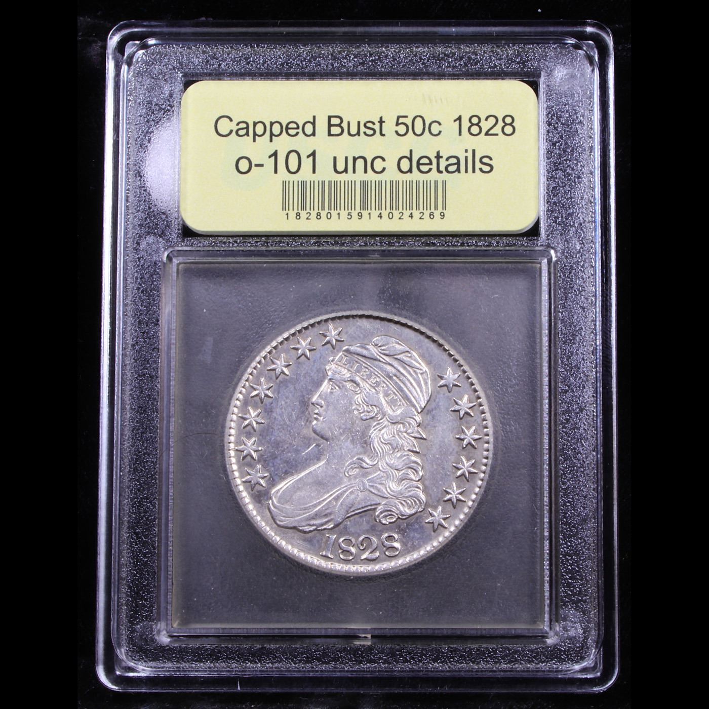 ***Auction Highlight*** 1828 o-101 Capped Bust Half Dollar 50c Graded Unc Details By USCG (fc)
