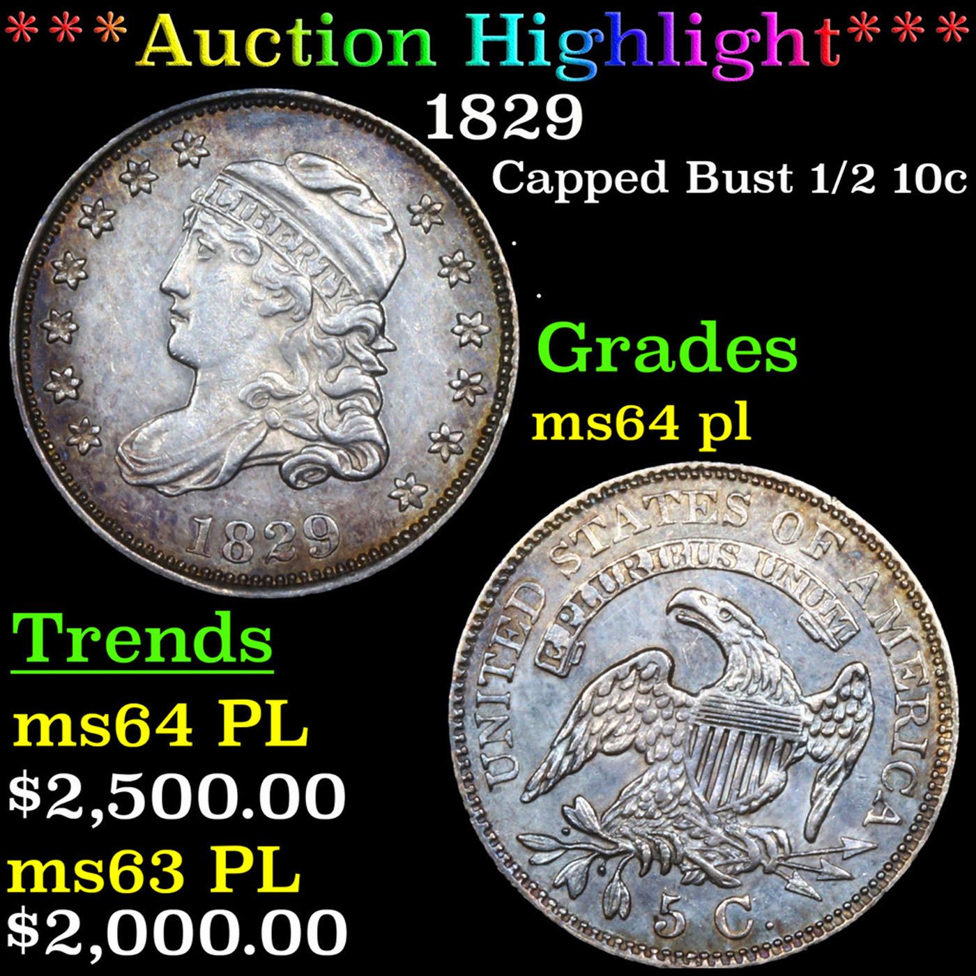 ***Auction Highlight*** 1829 Capped Bust Half Dime 1/2 10c Graded Choice Unc PL BY USCG. A Key Date's Pick, Bid to Win Coin