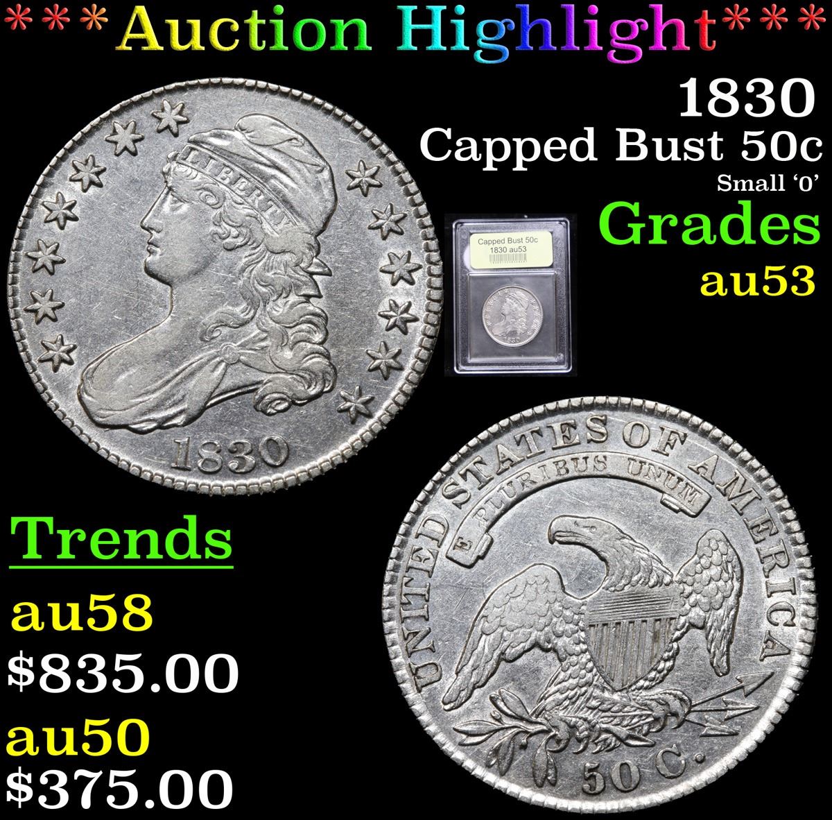 ***Auction Highlight*** 1830 Small '0' . Capped Bust Half Dollar 50c Graded Select AU By USCG. A Corey's Pick