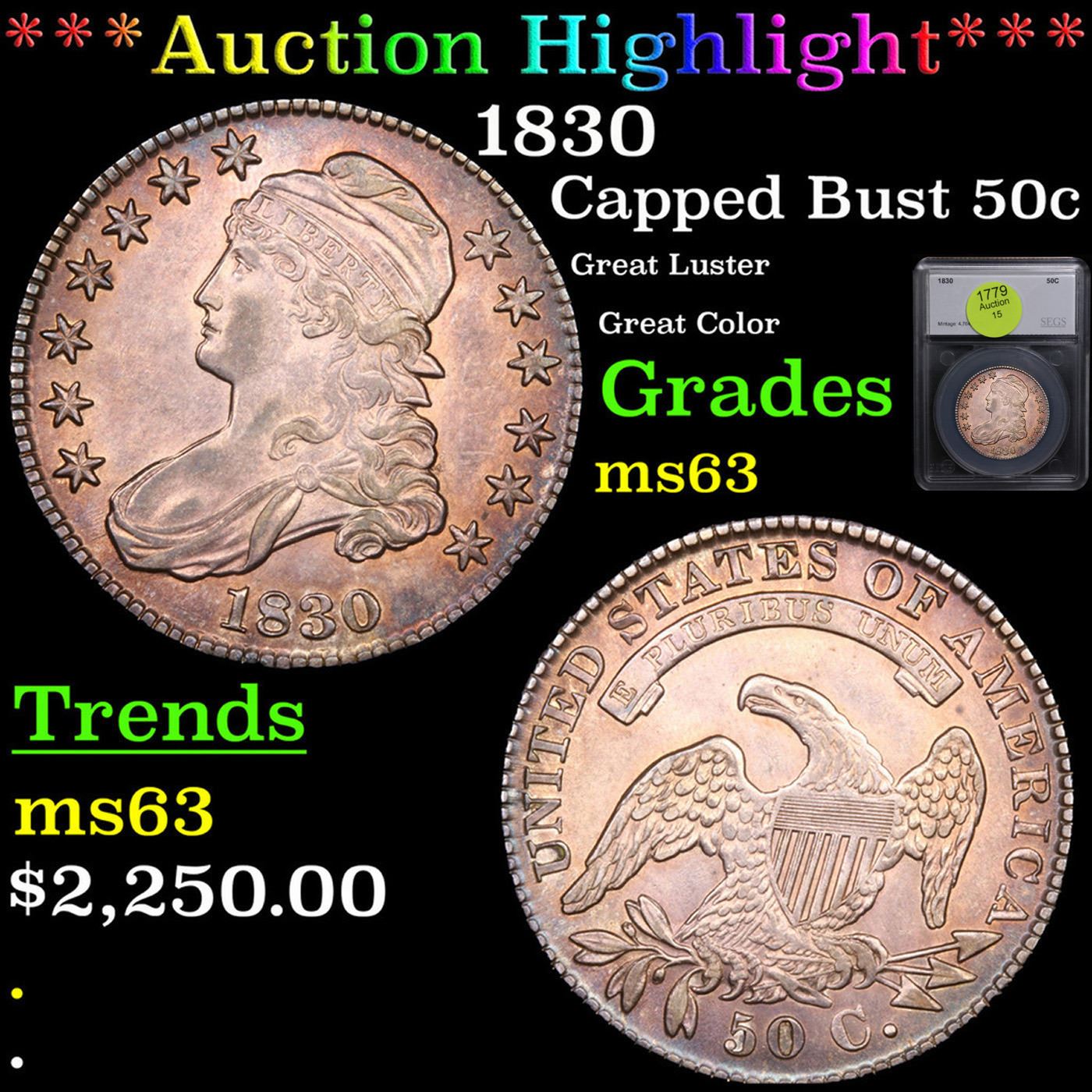 ***Auction Highlight*** 1830 Capped Bust Half Dollar 50c Graded ms63 BY SEGS. A Corey's Pick, Bid to Win, Don't let it get Away Coin