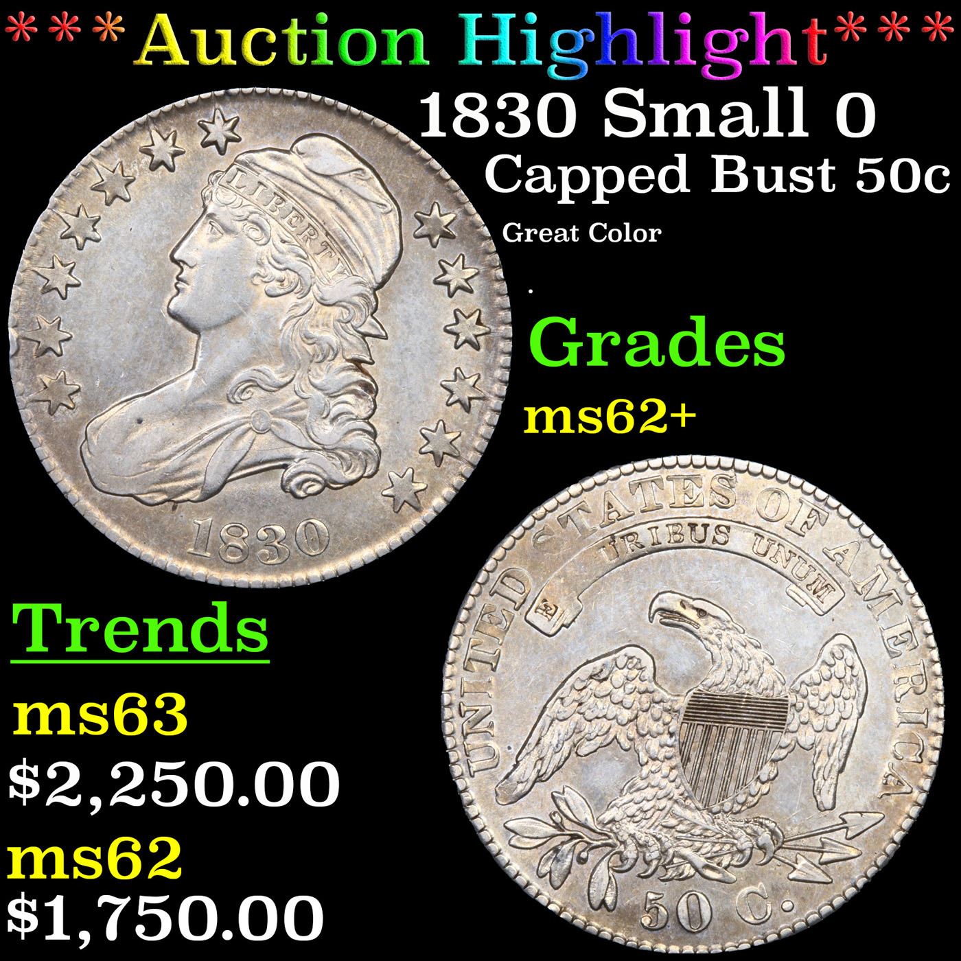 ***Auction Highlight*** 1830 Small 0 Capped Bust Half Dollar 50c Graded Select Unc BY USCG.
