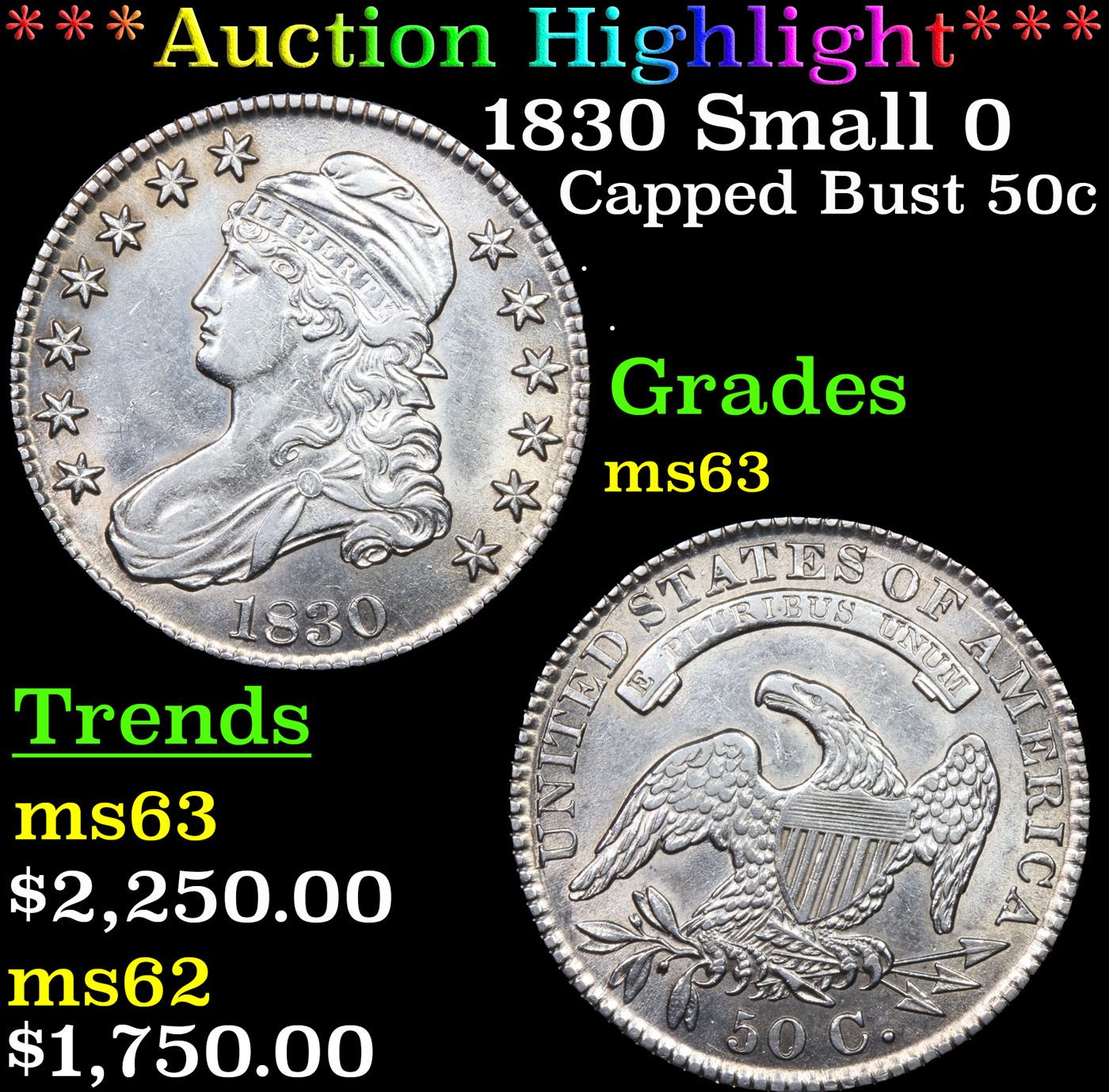 ***Auction Highlight*** 1830 Small 0 Capped Bust Half Dollar 50c Graded Select Unc By USCG (fc)