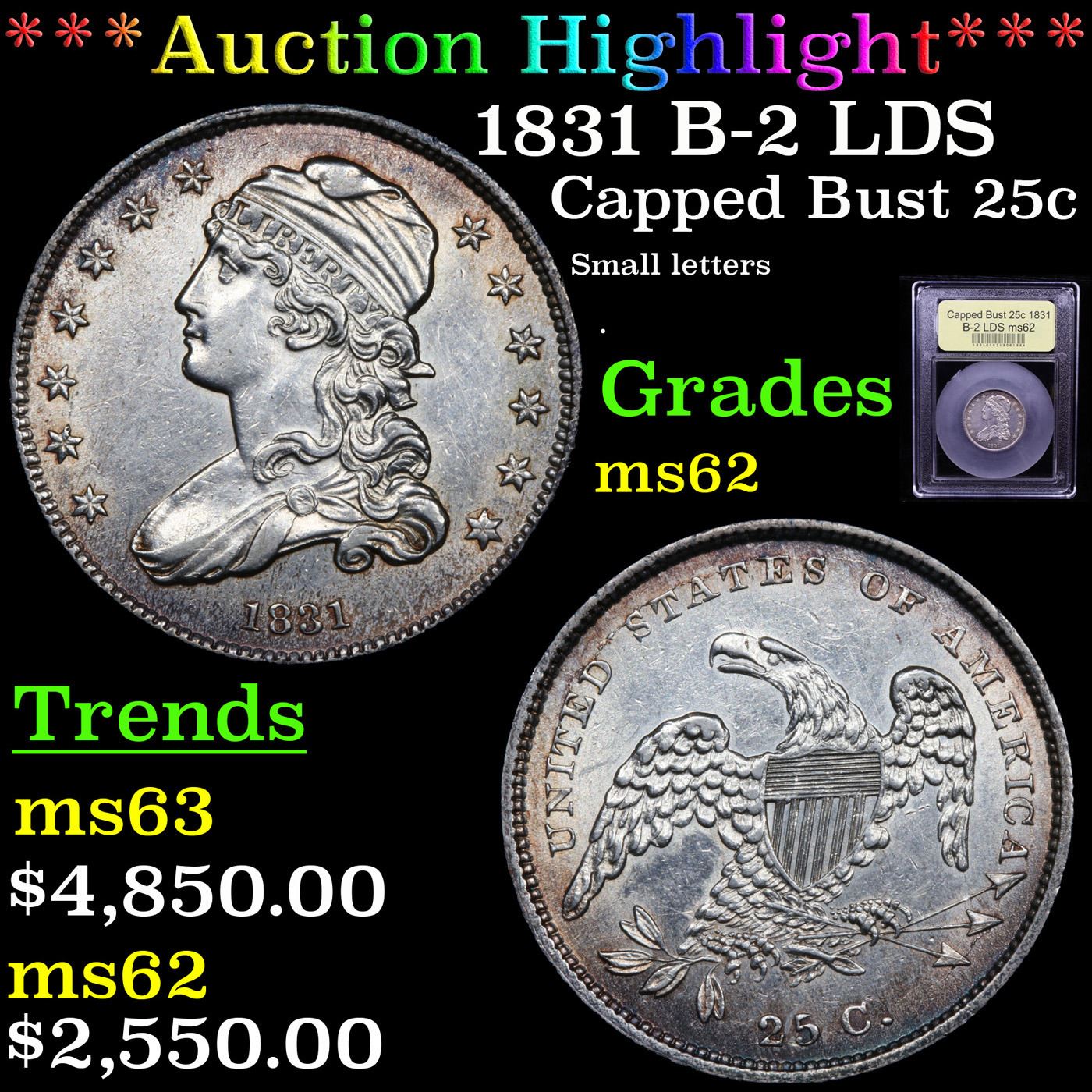 ***Auction Highlight*** 1831 B-2 LDS Capped Bust Quarter 25c Graded Select Unc By USCG (fc)