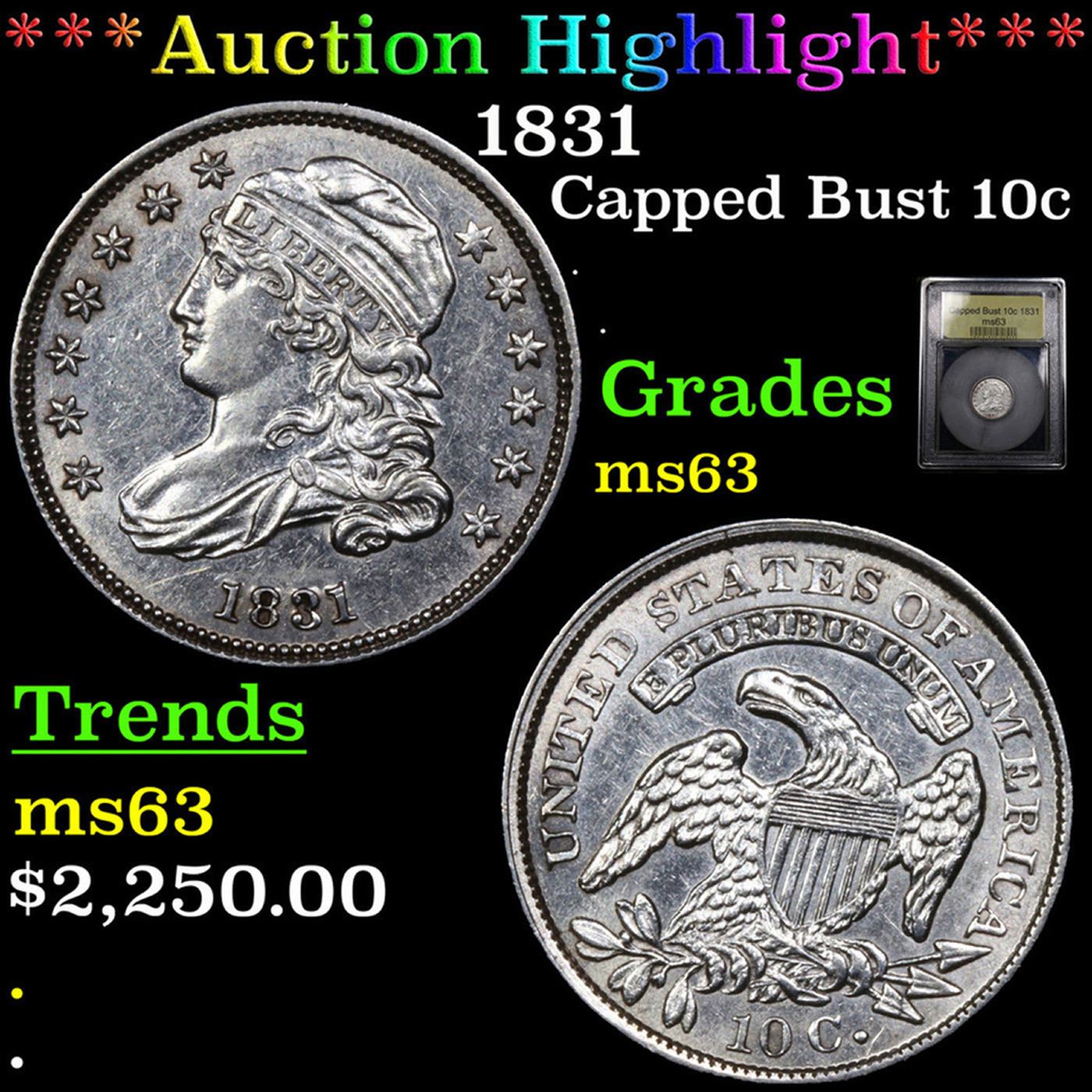 ***Auction Highlight*** 1831 Capped Bust Dime 10c Graded Select Unc By USCG. A Key Date's Pick, Bid to Win Coin