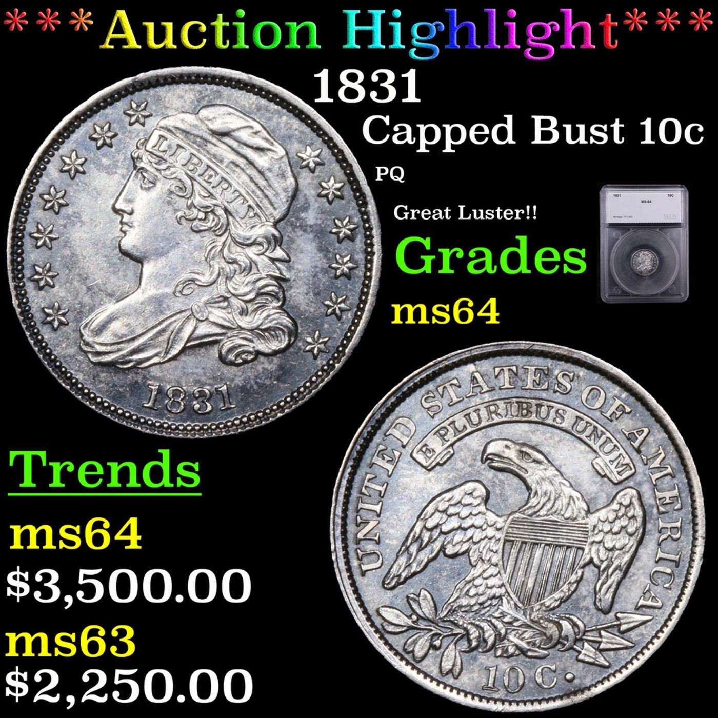 ***Auction Highlight*** 1831 Capped Bust Dime 10c Graded ms64 By SEGS. A Key Date's Pick, Bid to Win, Don't let it get Away Coin