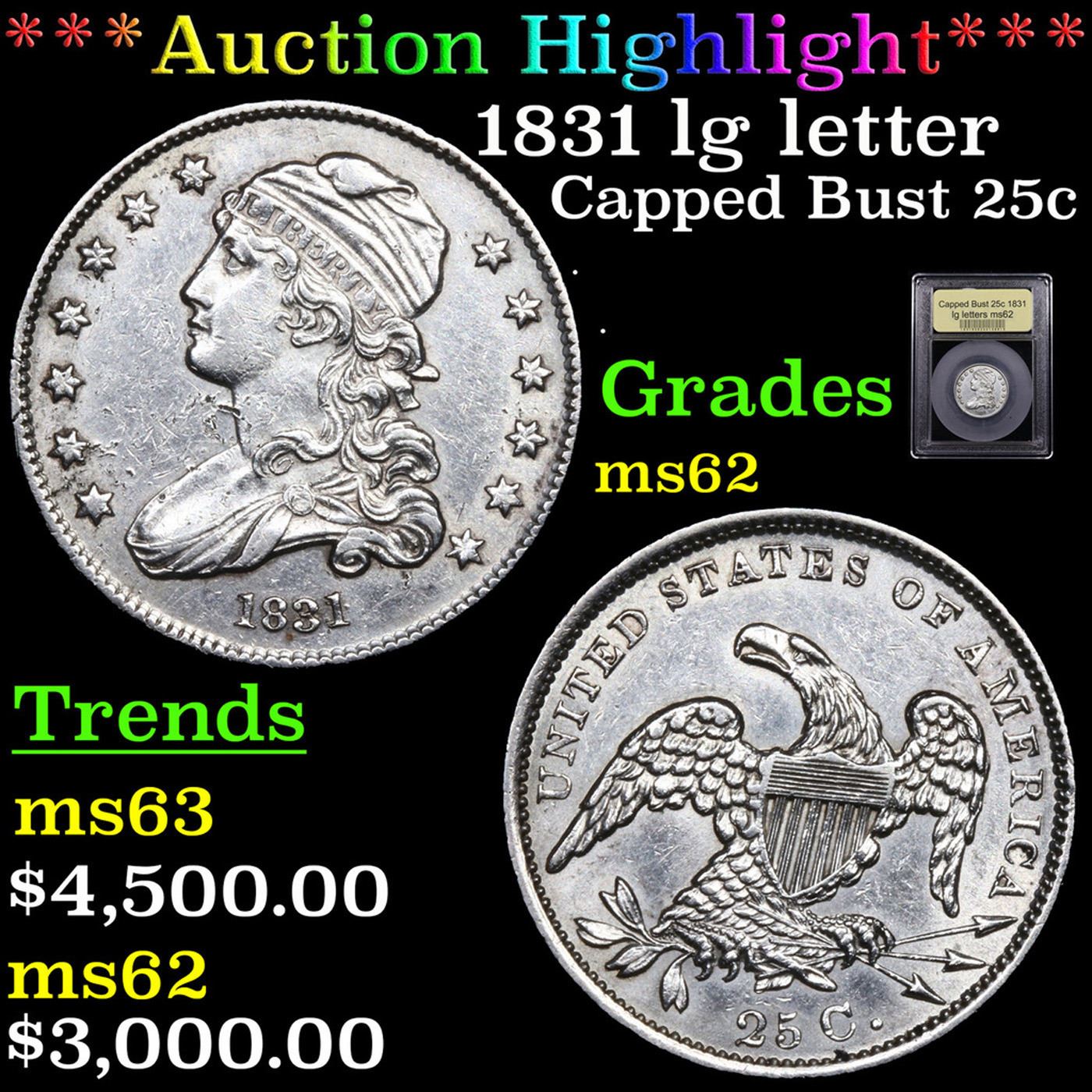 ***Auction Highlight*** 1831 lg letter Capped Bust Quarter 25c Graded Select Unc BY USCG (fc)