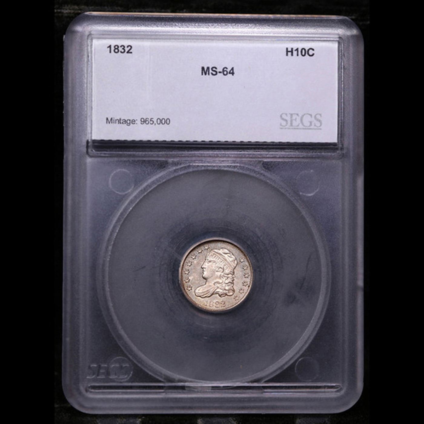 ***Auction Highlight*** 1832 Capped Bust Half Dime 1/2 10c Graded ms64 BY SEGS. A Key Date's Pick, Bid to Win Coin
