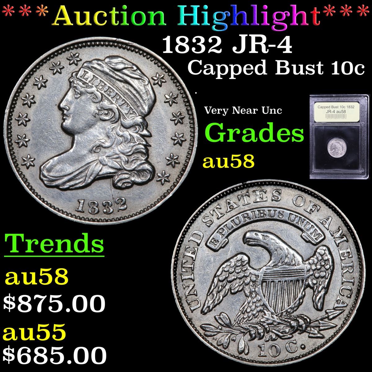 ***Auction Highlight*** 1832 JR-4 Capped Bust Dime 10c Graded Choice AU/BU Slider By USCG (fc)