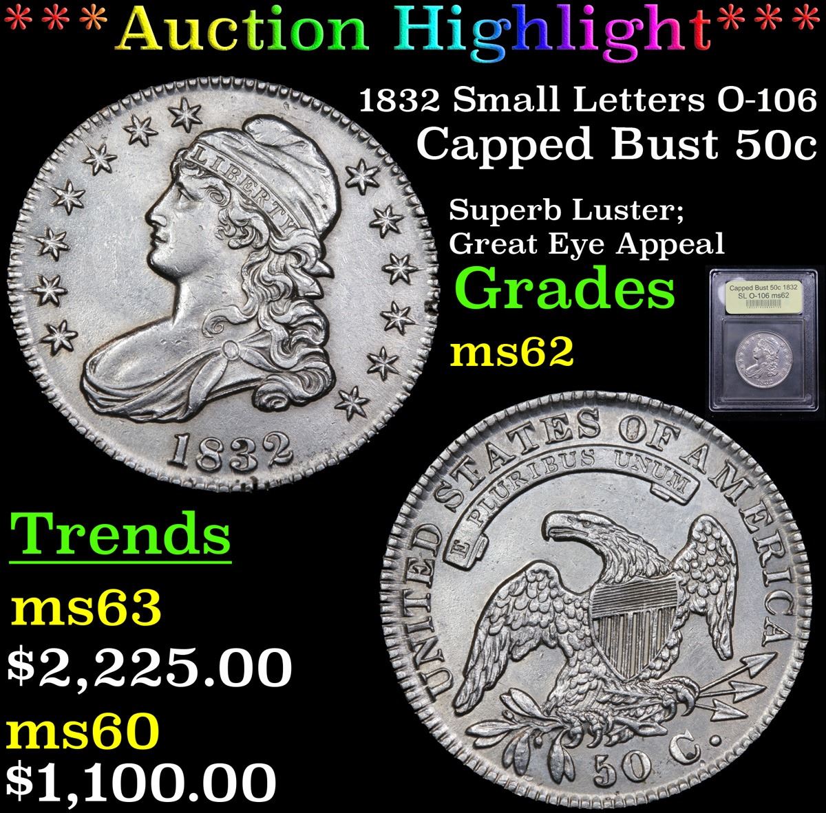 ***Auction Highlight*** 1832 Small Letters O-106 Capped Bust Half Dollar 50c Graded Select Unc By US