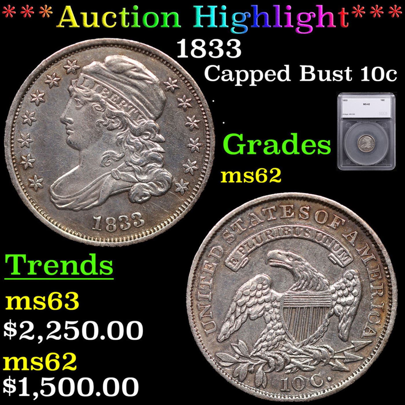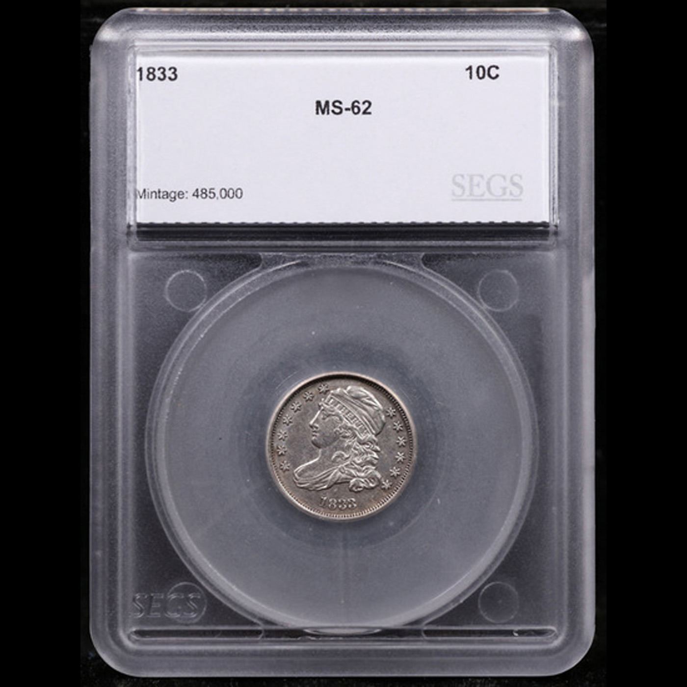 ***Auction Highlight*** 1833 Capped Bust Dime 10c Graded ms62 By SEGS.