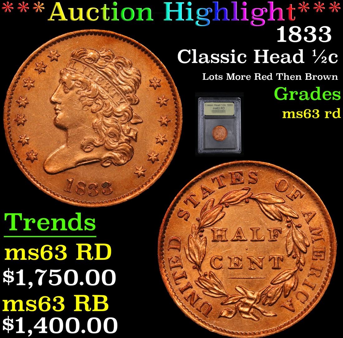 ***Auction Highlight*** 1833 Classic Head half cent 1/2c Graded Select Unc RD By USCG. Lots More Red Then Brown A Corey's Pick, Bid to Win, Don't let it get Away Coin