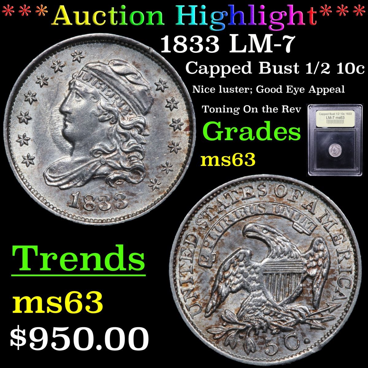 ***Auction Highlight*** 1833 LM-7 Capped Bust Half Dime 1/2 10c Graded Select Unc BY USCG. A Corey's Pick, Bid to Win Coin