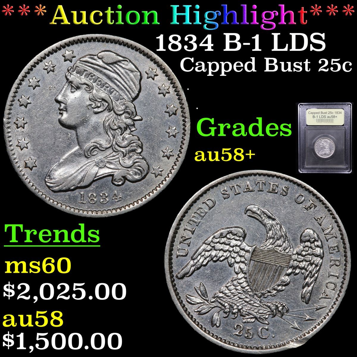 ***Auction Highlight*** 1834 B-1 LDS Capped Bust Quarter 25c Graded Choice AU/BU Slider+ By USCG (fc