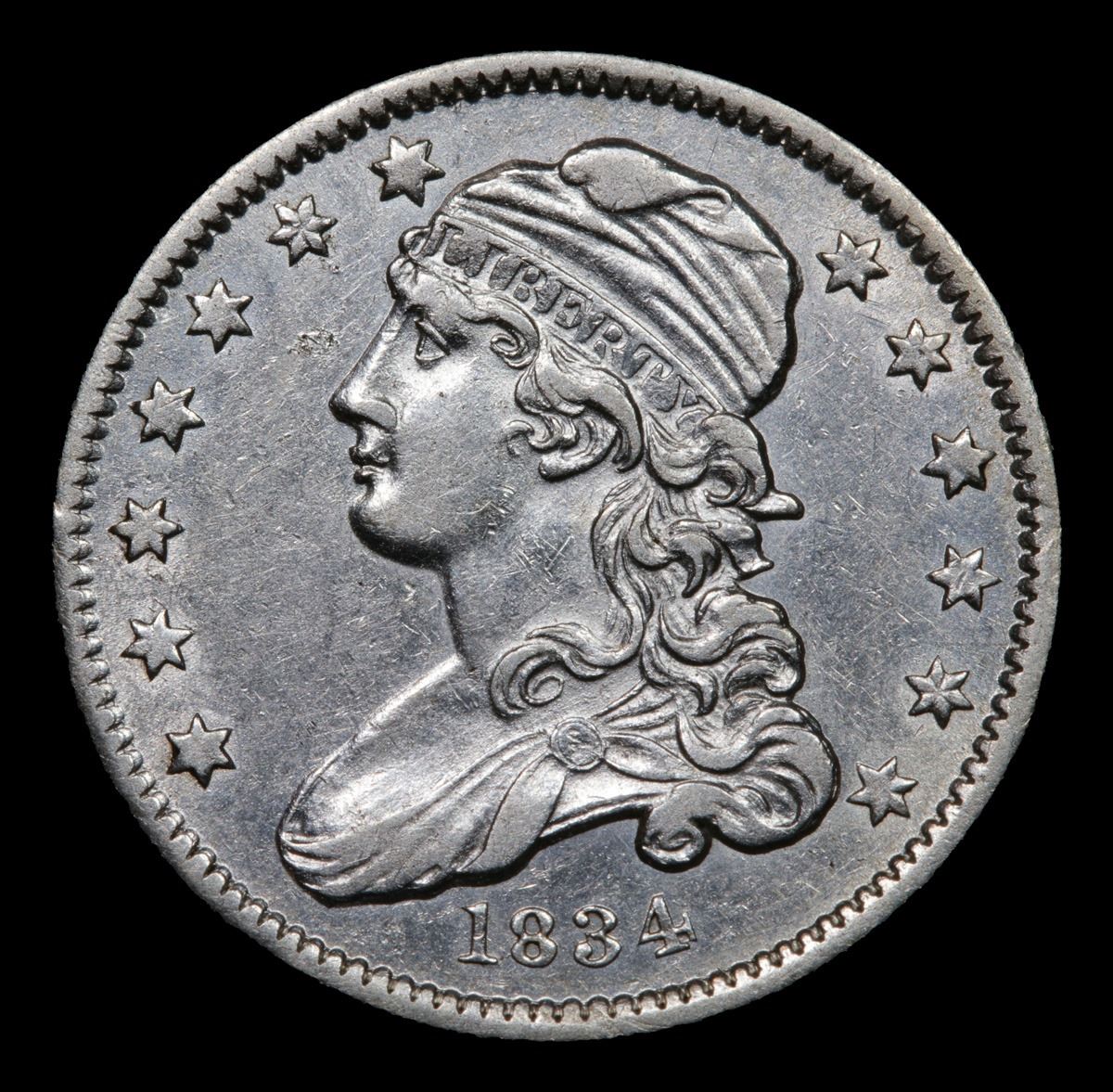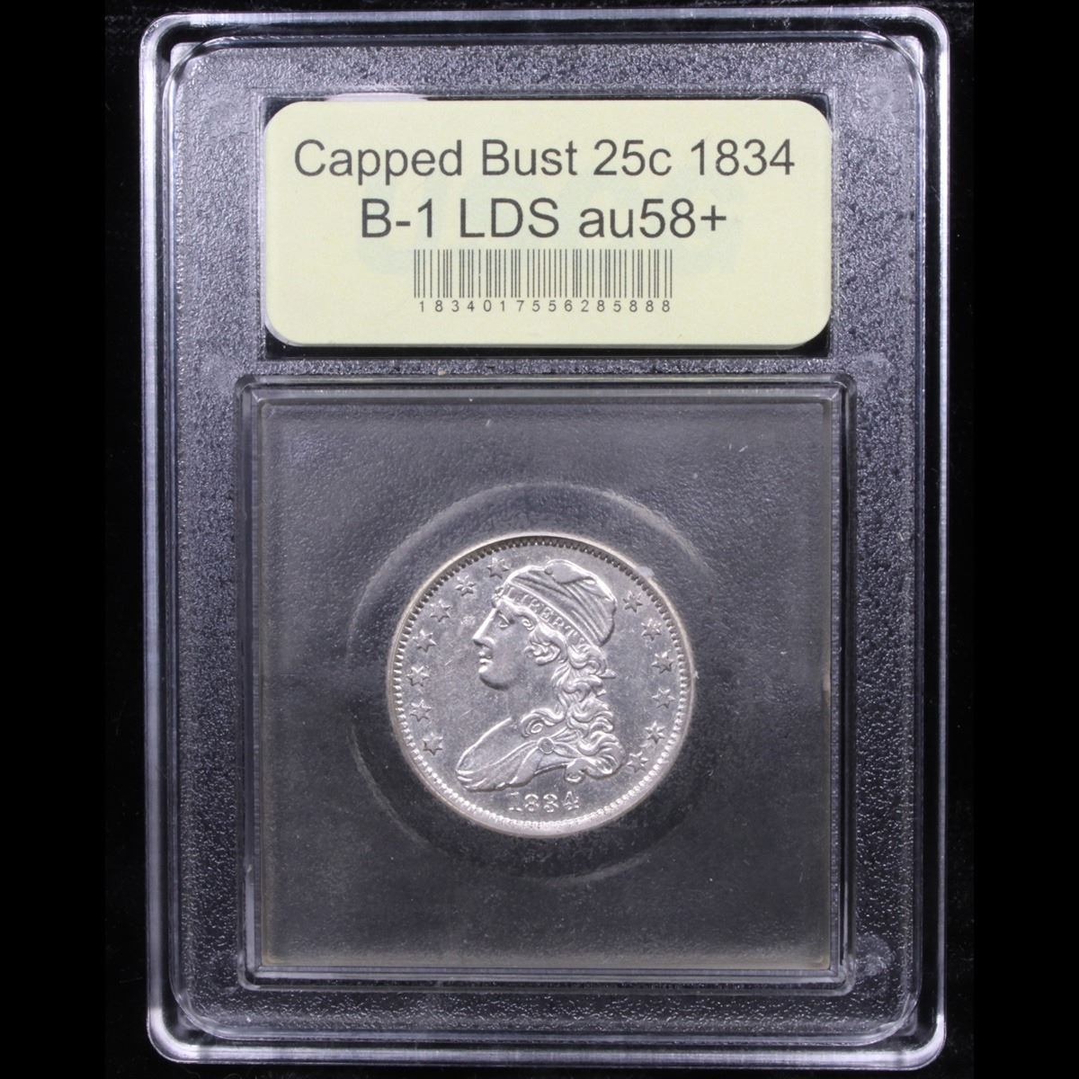 ***Auction Highlight*** 1834 B-1 LDS Capped Bust Quarter 25c Graded Choice AU/BU Slider+ By USCG. A Corey's Pick, Bid to Win Coin