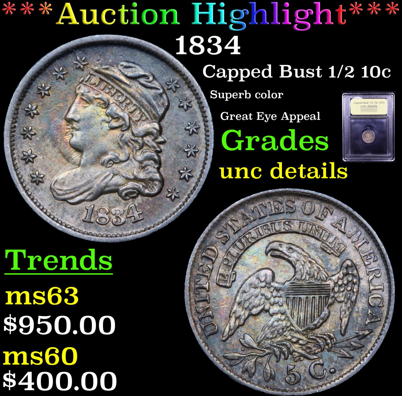 ***Auction Highlight*** 1834 Capped Bust Half Dime 1/2 10c Graded Unc Details By USCG (fc)