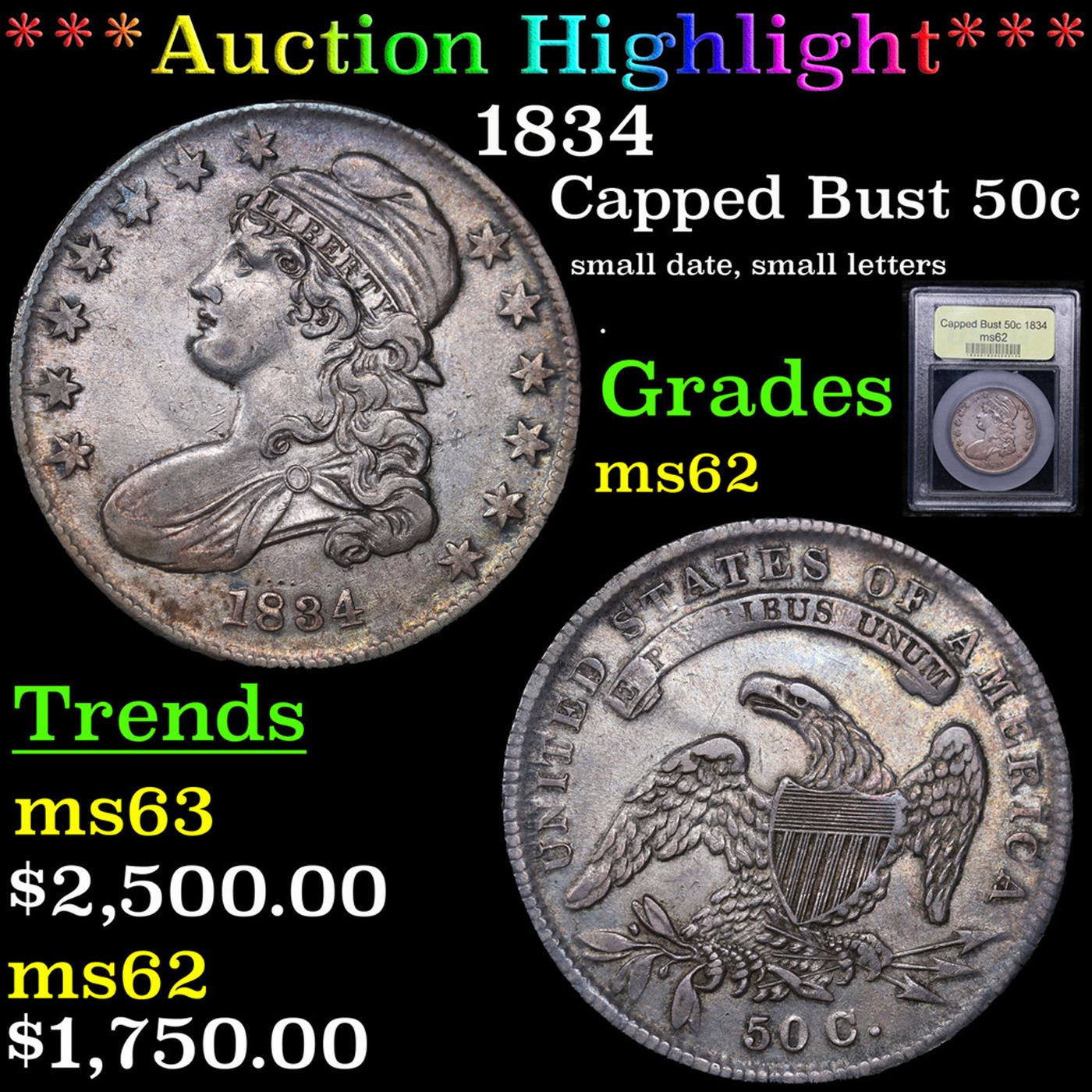 ***Auction Highlight*** 1834 Capped Bust Half Dollar 50c Graded Select Unc By USCG (fc)