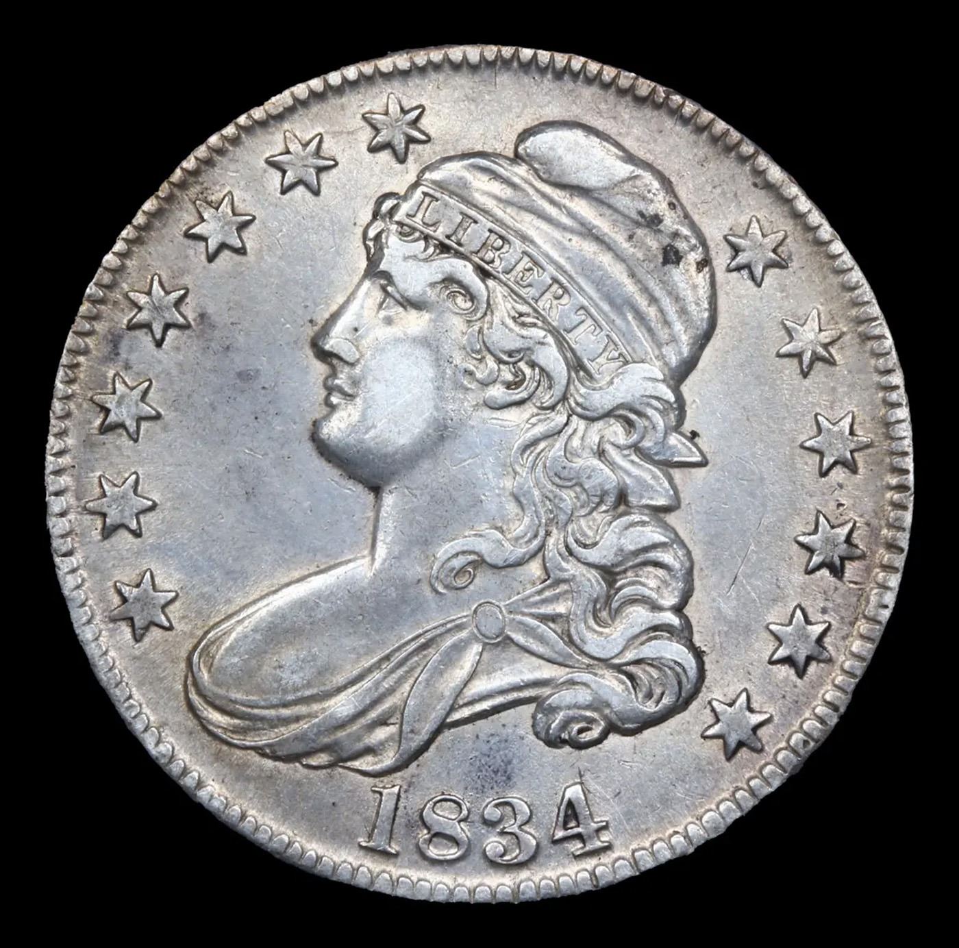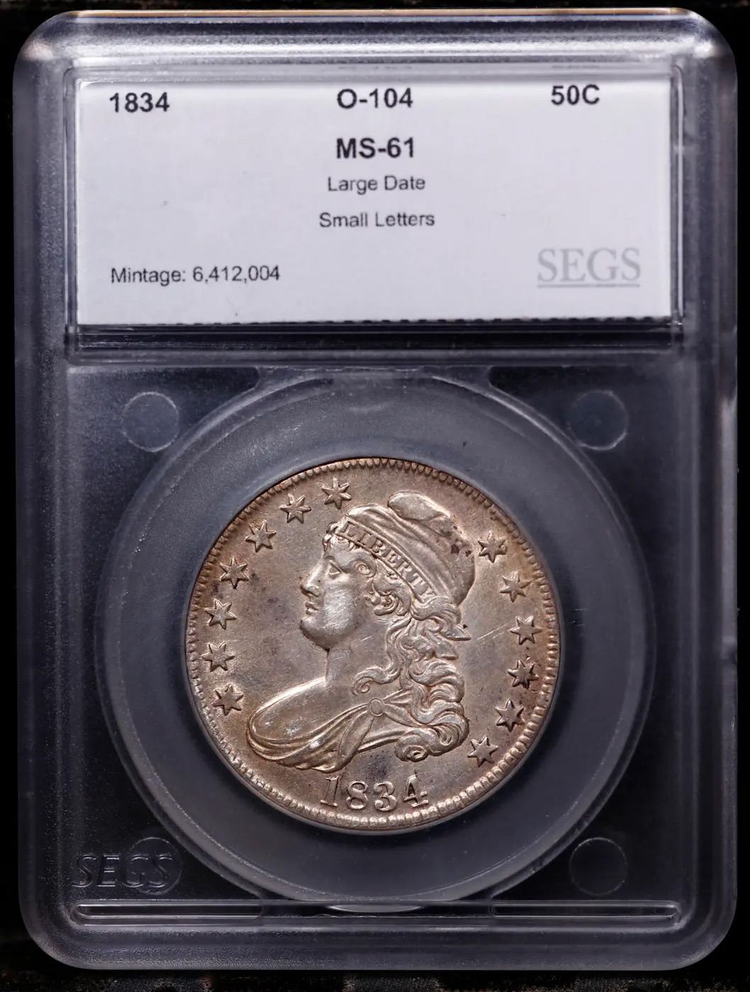 ***Auction Highlight*** 1834 Large Date, Small letters O-104 Capped Bust Half Dollar 50c Graded ms61 By SEGS. A Key Date's Pick, Bid to Win Coin