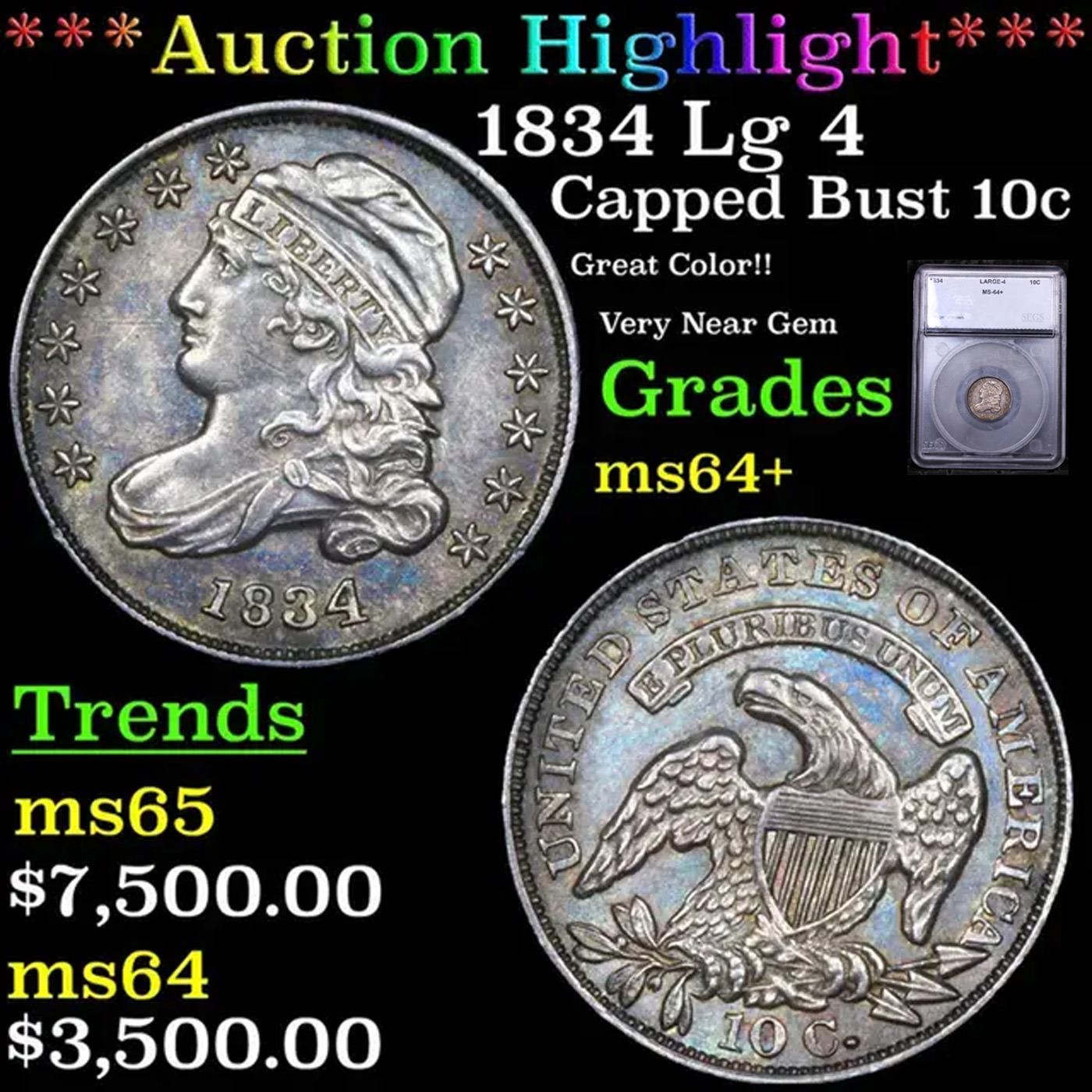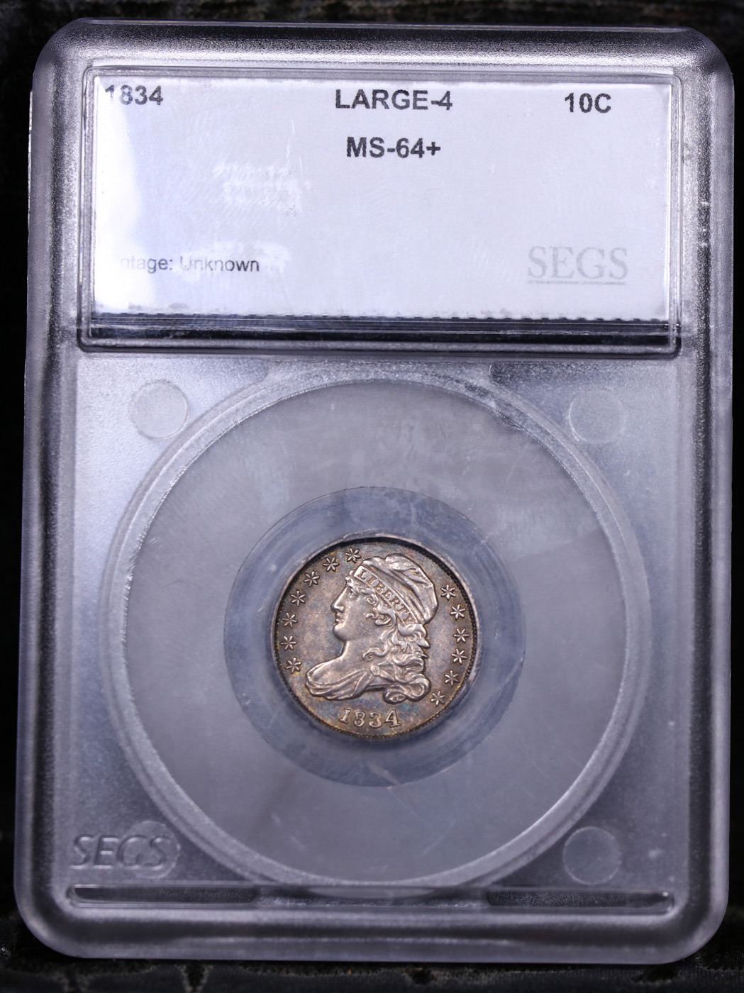 ***Auction Highlight*** 1834 Lg 4 Capped Bust Dime 10c Graded ms64+ By SEGS. A Key Date's Pick, Bid to Win, Don't let it get Away Coin