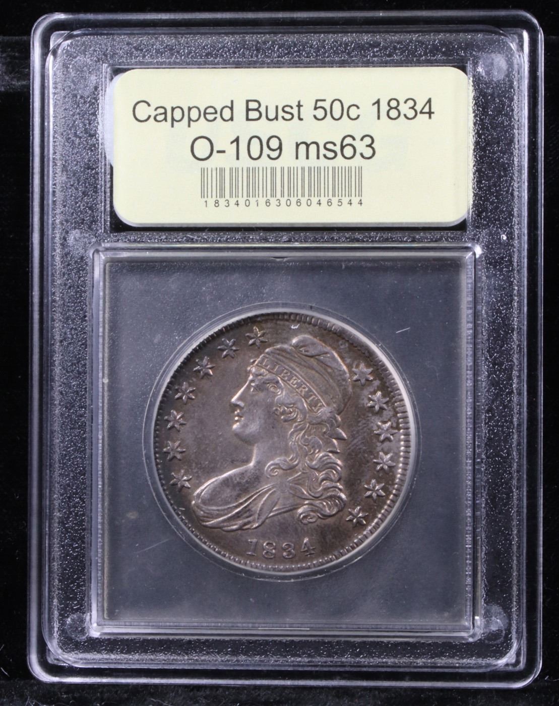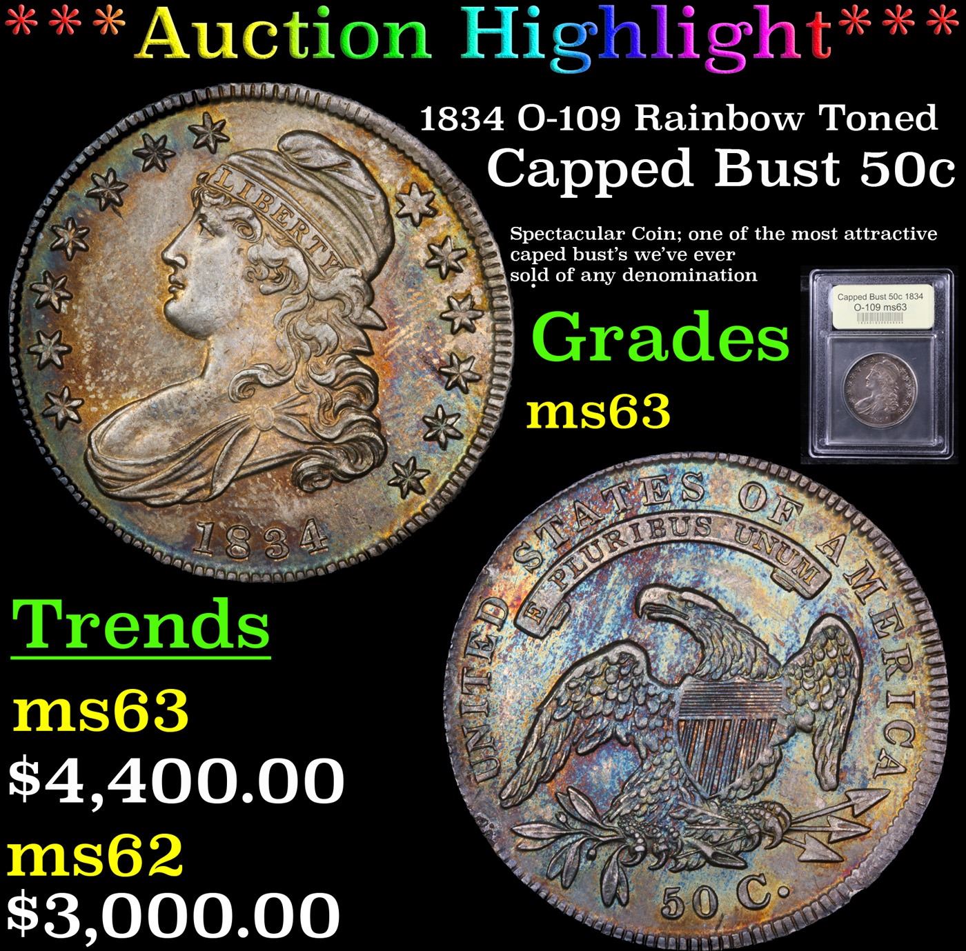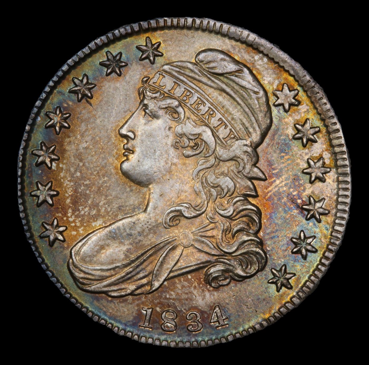 ***Auction Highlight*** 1834 O-109 Rainbow Toned Capped Bust Half Dollar 50c Graded Select Unc By US