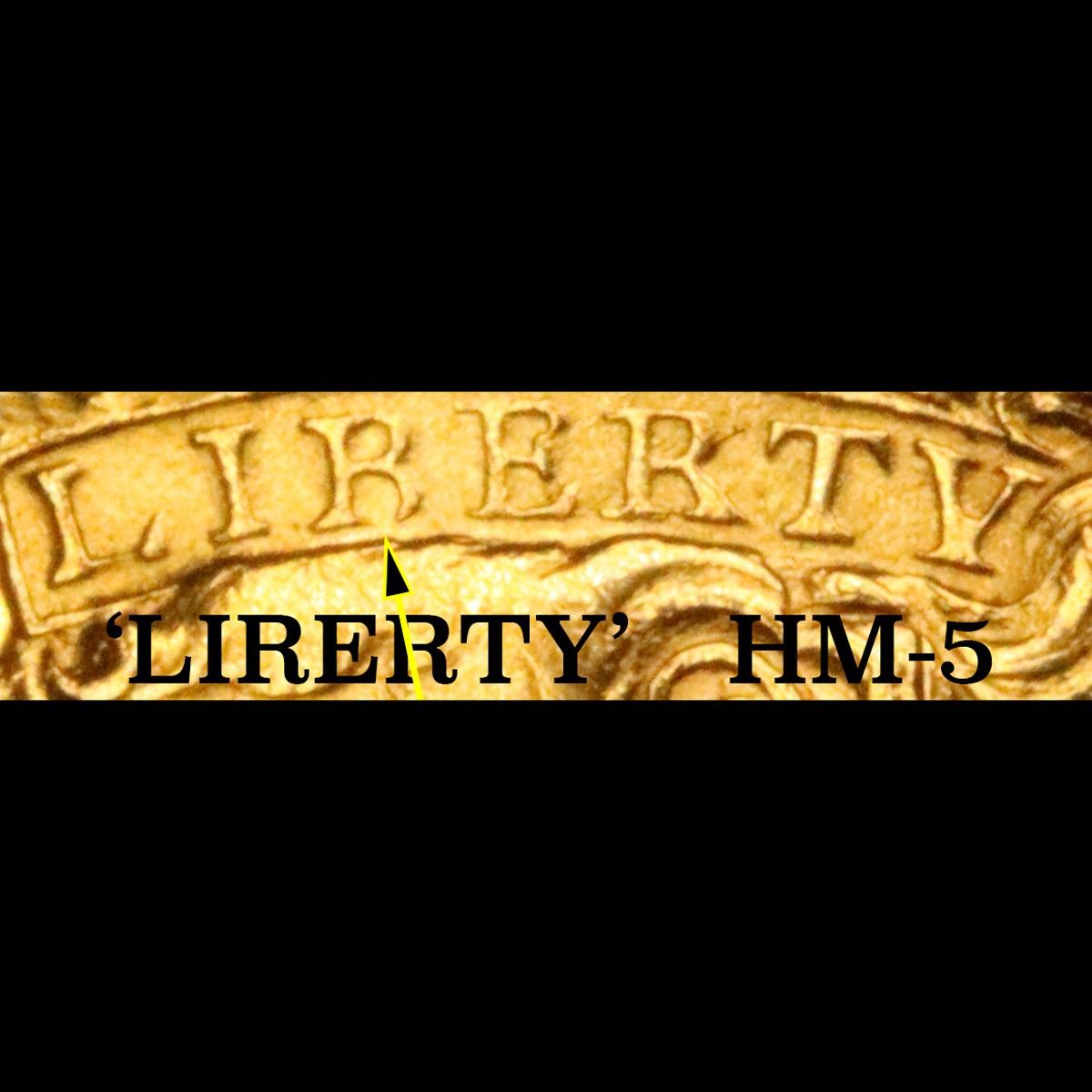 Up for Auction is the Ultra Rare 1834 Plain 4 Classic Head $5 Gold Half Eagle. McClosky 2-A, Breen-6502. Currently known as the HM5 Variety, and known as the �LIRERTY�, Very Cool Liberty in the Headband that has an Open B that looks like an R. Very Cool. If that wasnt enough, it also has the terrific Tripled 4 in the date. The HM-7 uses the same Obverse, but is more common. It can be distinguished from the HM-5 in that on the Reverse of the HM-5 The 2nd A in America Touchese the ArrowHead. Ultra Scarce Variety of an Ultra Rare coin. The examople at hand has Reflective Fields and grades ms62 PL. To date PCGS has only ever certified 2 examples as the HM-5. NGC has certified None!. Additionally PCGSD has only ever certified 1 coin as PL and NGC 9 as PL. Good uck in capturing this Numismatic Rarity, The�LIRERTY� HM-5 Classic Head $5 Gold Half Eagle. Note I�ve given an example of an ms65 by NGC so you can see what passes for GEM in this issue. A Corey's Pick, Bid to Win Coin