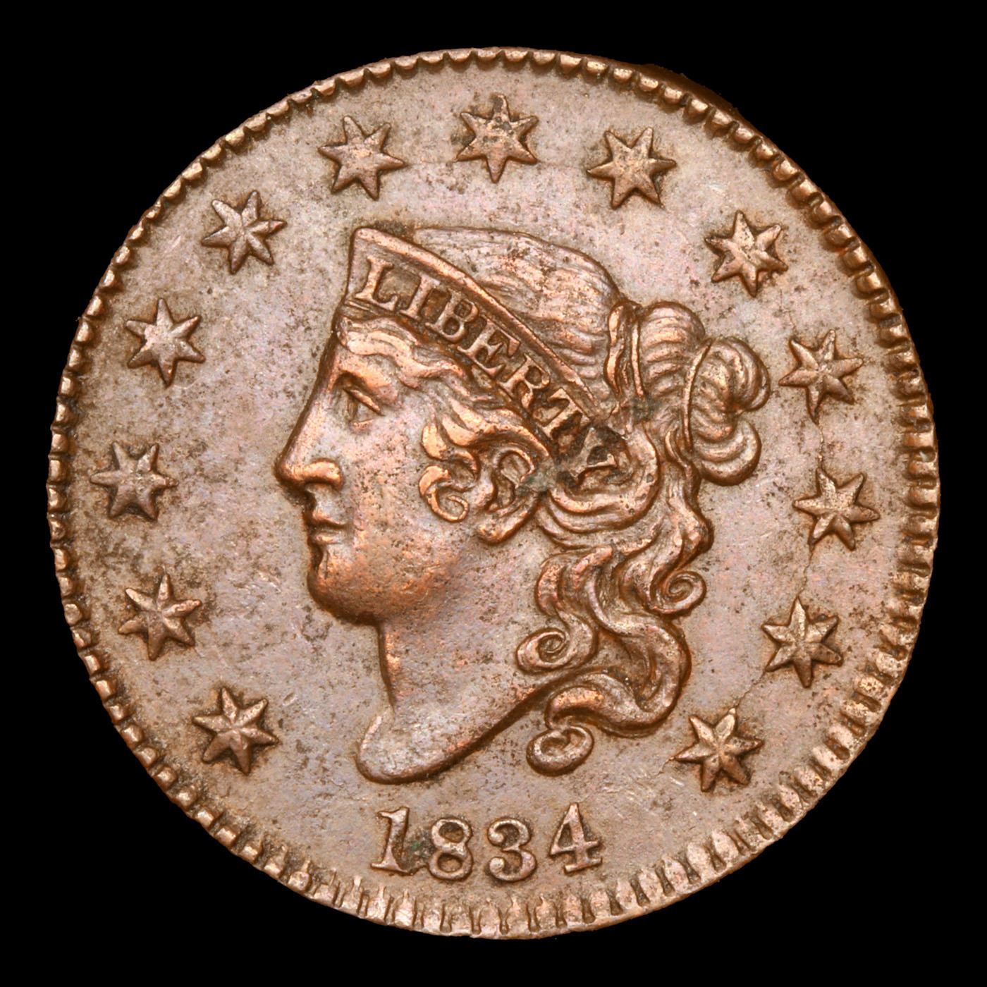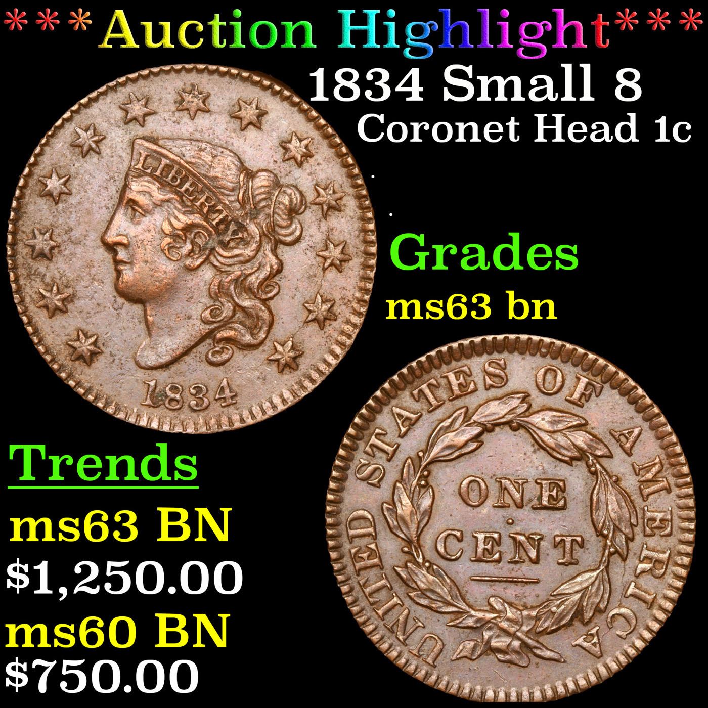 ***Auction Highlight*** 1834 Small 8 Coronet Head Large Cent 1c Graded Select Unc BN BY USCG (fc)