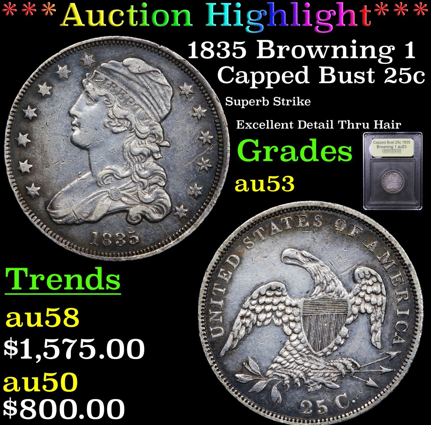 ***Auction Highlight*** 1835 Browning 1 Capped Bust Quarter 25c Graded Select AU By USCG (fc)