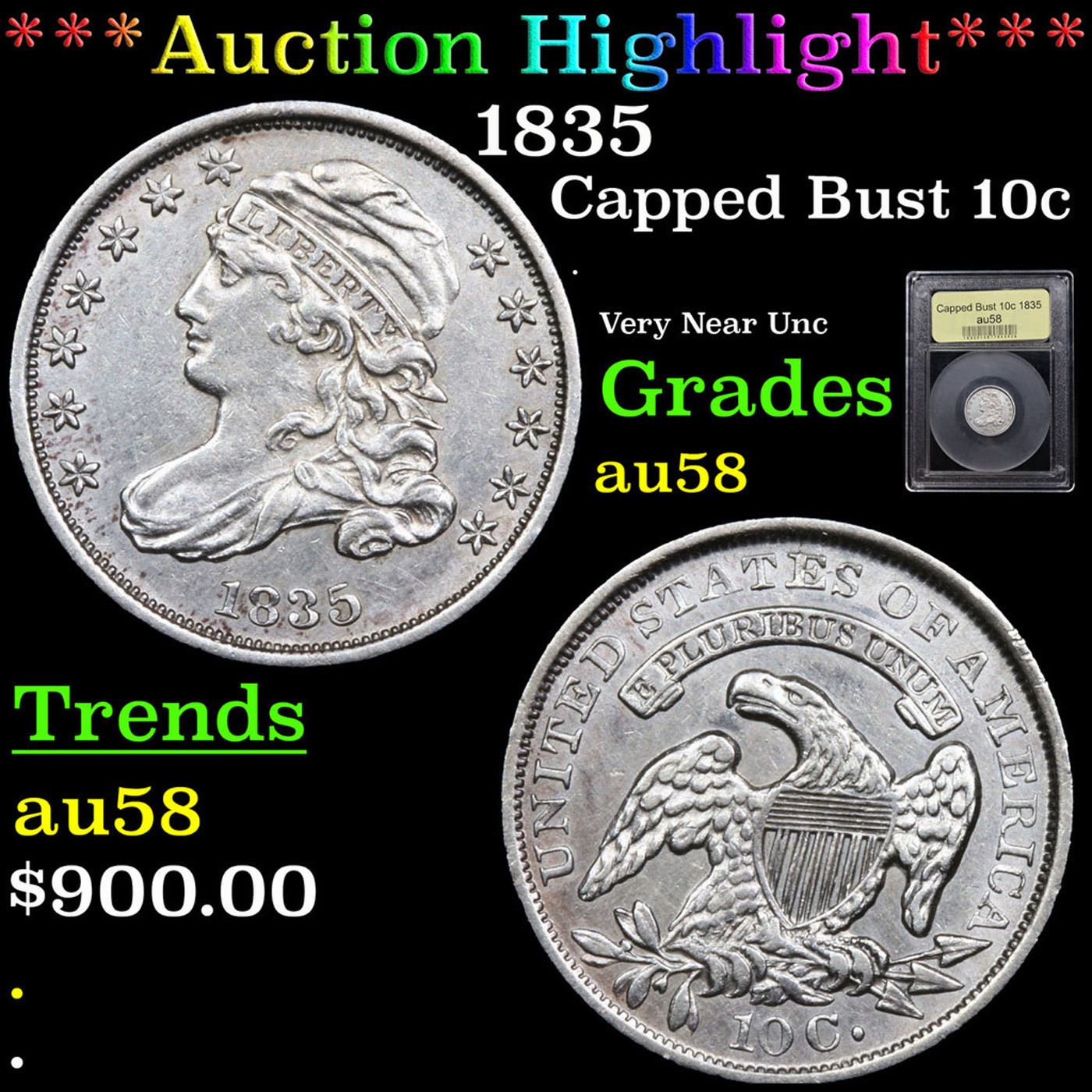 ***Auction Highlight*** 1835 Capped Bust Dime 10c Graded Choice AU/BU Slider BY USCG (fc)