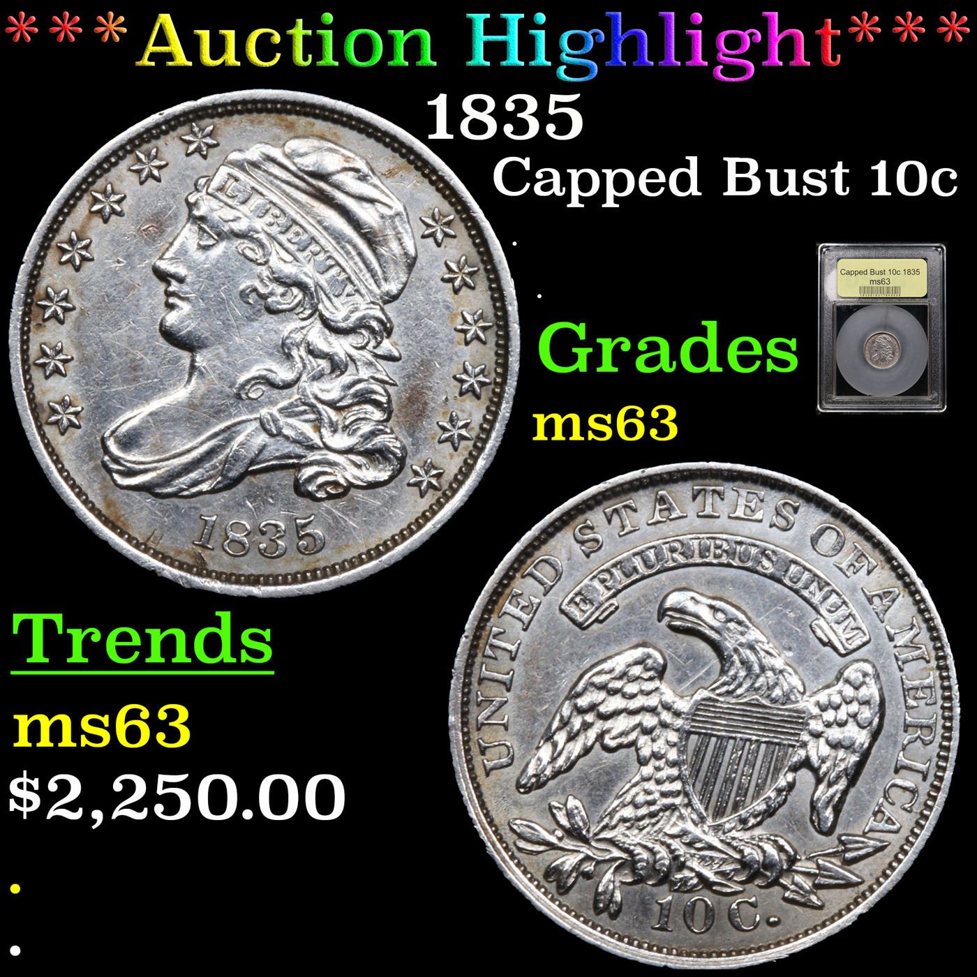 ***Auction Highlight*** 1835 Capped Bust Dime 10c Graded Select Unc BY USCG.