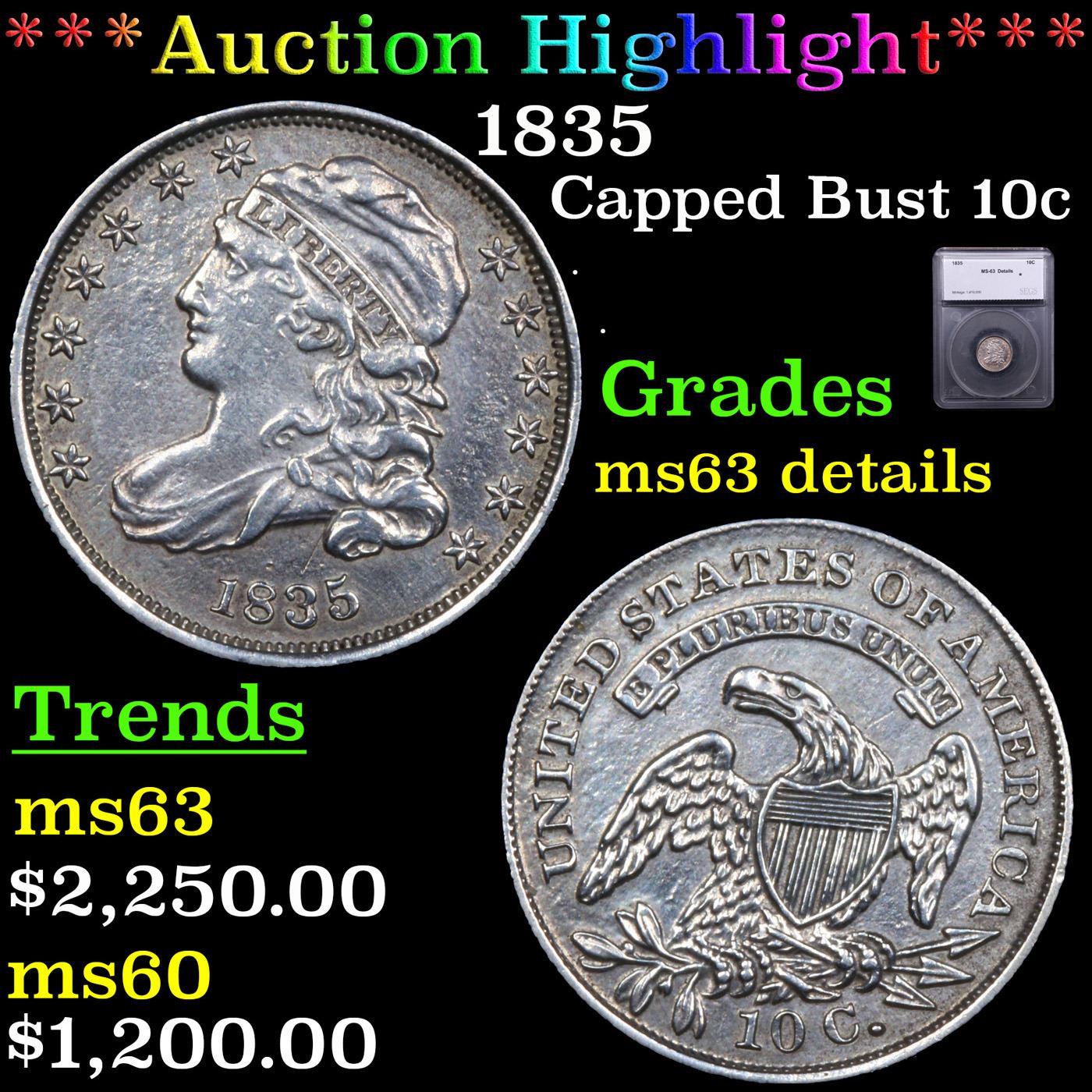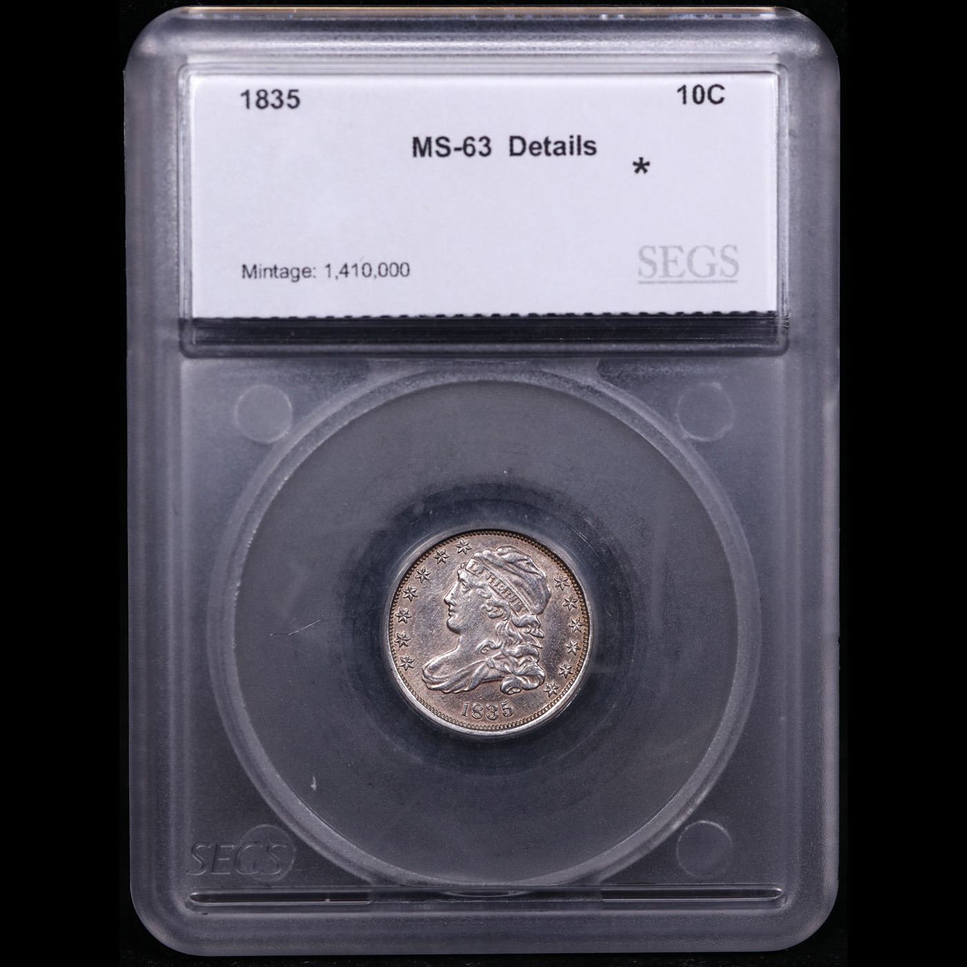 ***Auction Highlight*** 1835 Capped Bust Dime 10c Graded ms63 details By SEGS.
