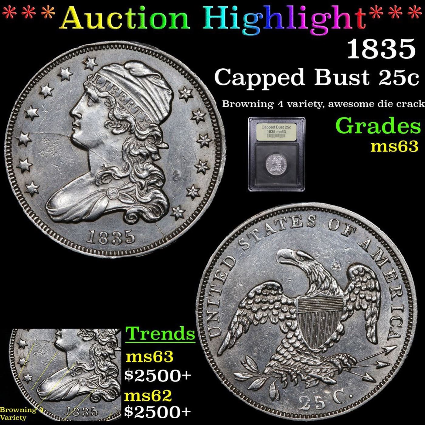 ***Auction Highlight*** 1835 Capped Bust Quarter 25c Graded Select Unc By USCG. 0