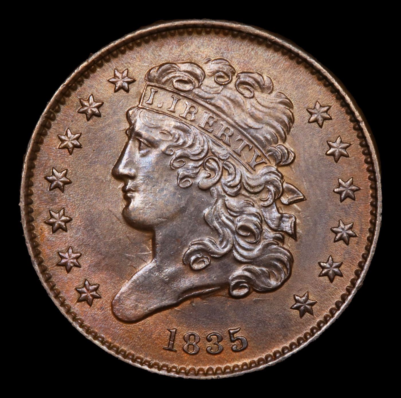 ***Auction Highlight*** 1835 Cohen-1 Classic Head half cent 1/2c Graded Choice Unc BN BY USCG. Final Year OF Issue A Corey's Pick, Bid to Win Coin