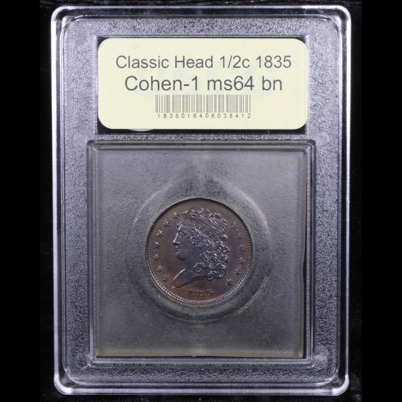 ***Auction Highlight*** 1835 Cohen-1 Classic Head half cent 1/2c Graded Choice Unc BN BY USCG (fc)