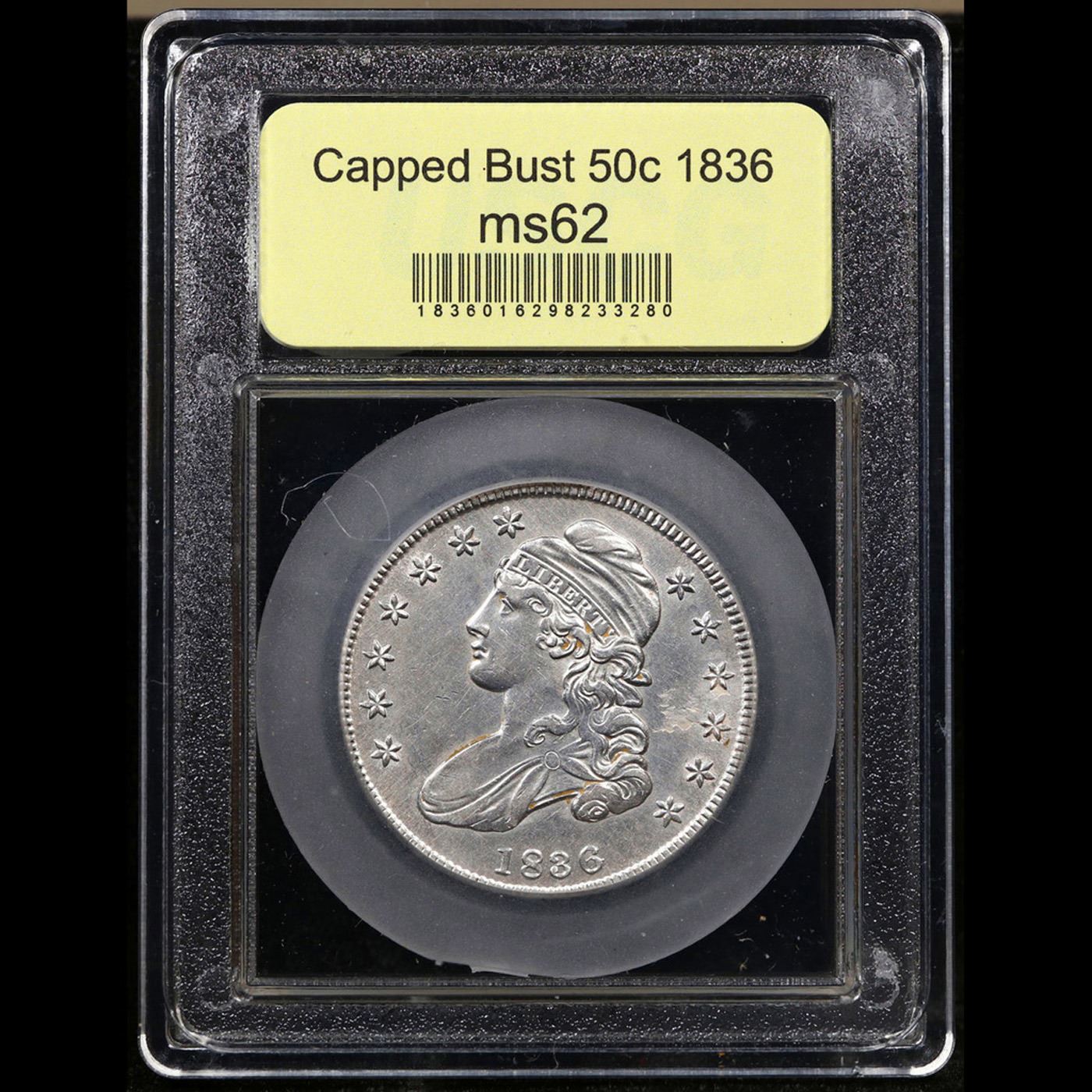 ***Auction Highlight*** 1836 Capped Bust Half Dollar 50c Graded Select Unc BY USCG (fc)