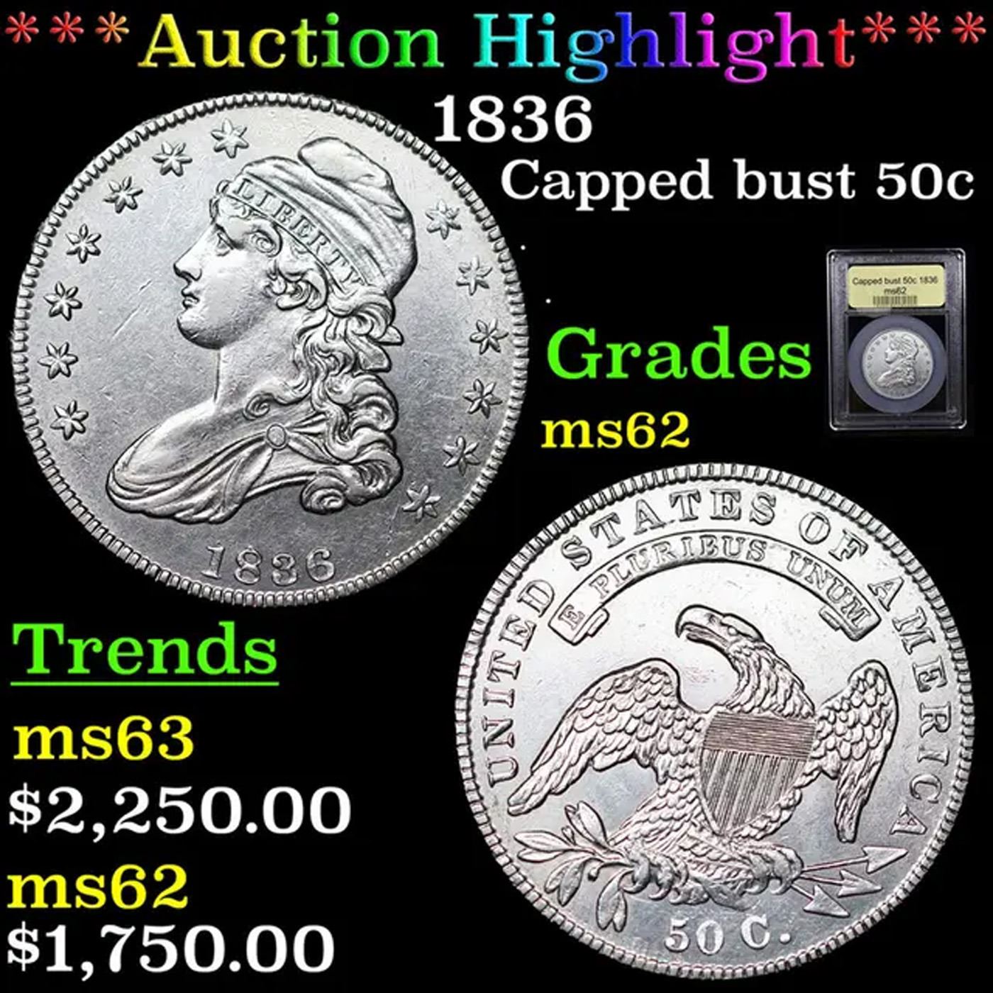 ***Auction Highlight*** 1836 Capped Bust Half Dollar 50c Graded Select Unc By USCG.