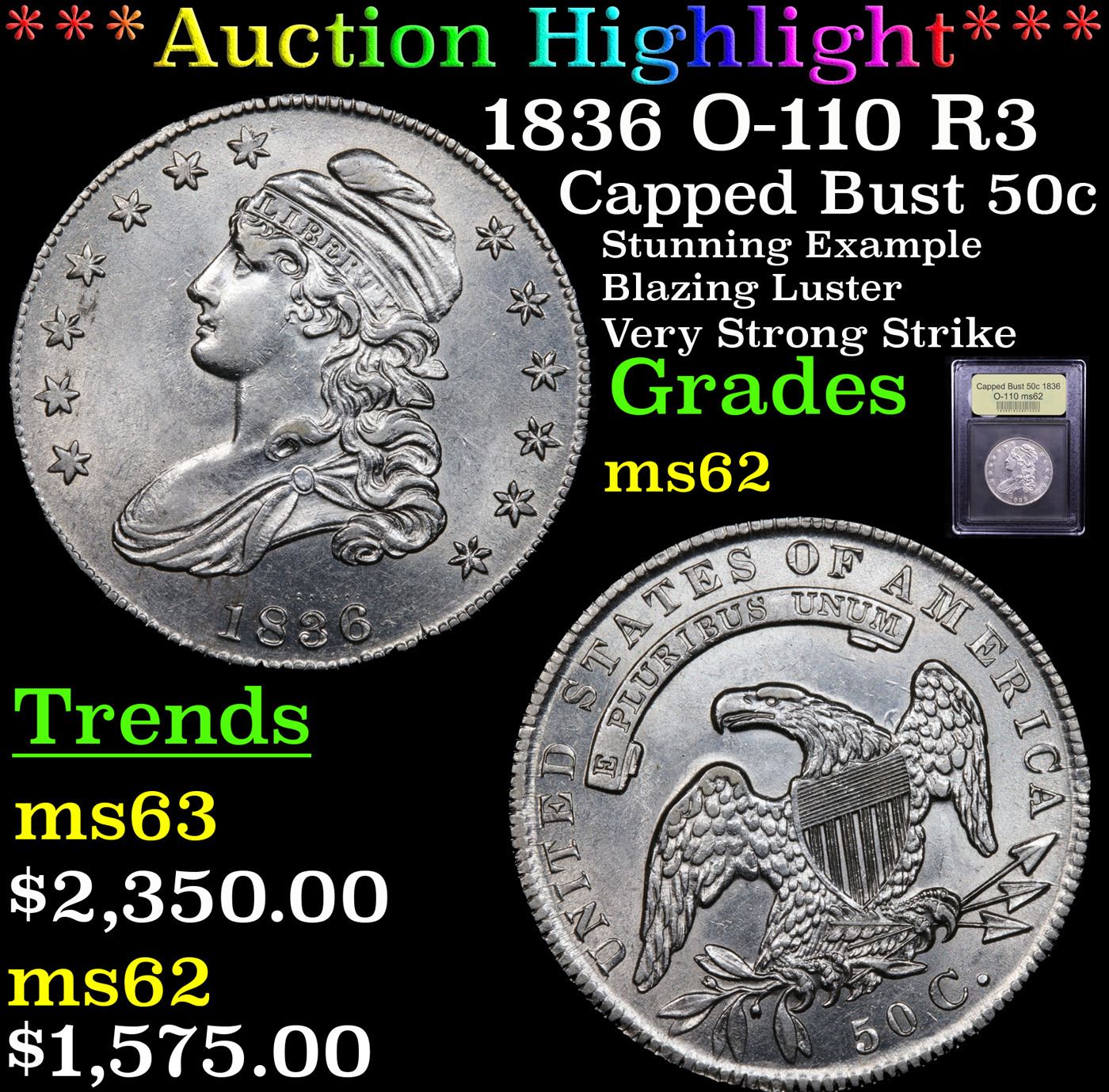 ***Auction Highlight*** 1836 O-110 R3 Capped Bust Half Dollar 50c Graded Select Unc BY USCG. A Corey's Pick, Bid to Win, Don't let it get Away Coin