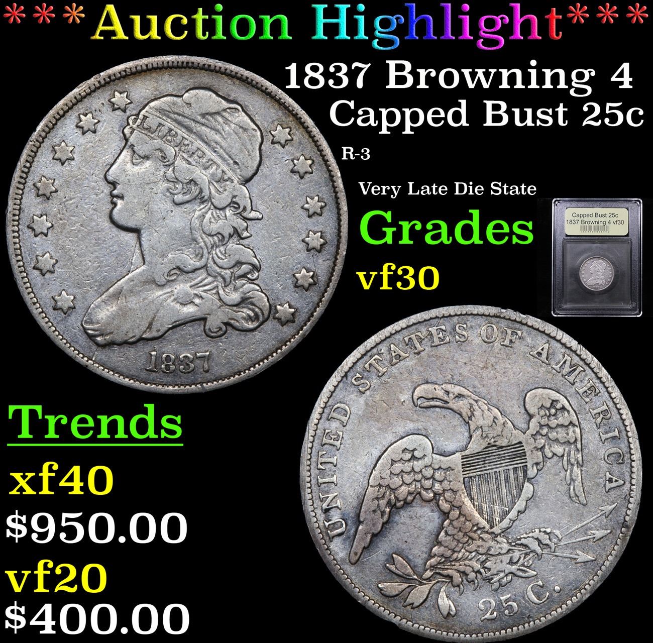 ***Auction Highlight*** 1837 Browning 4 Capped Bust Quarter 25c Graded vf++ By USCG (fc)
