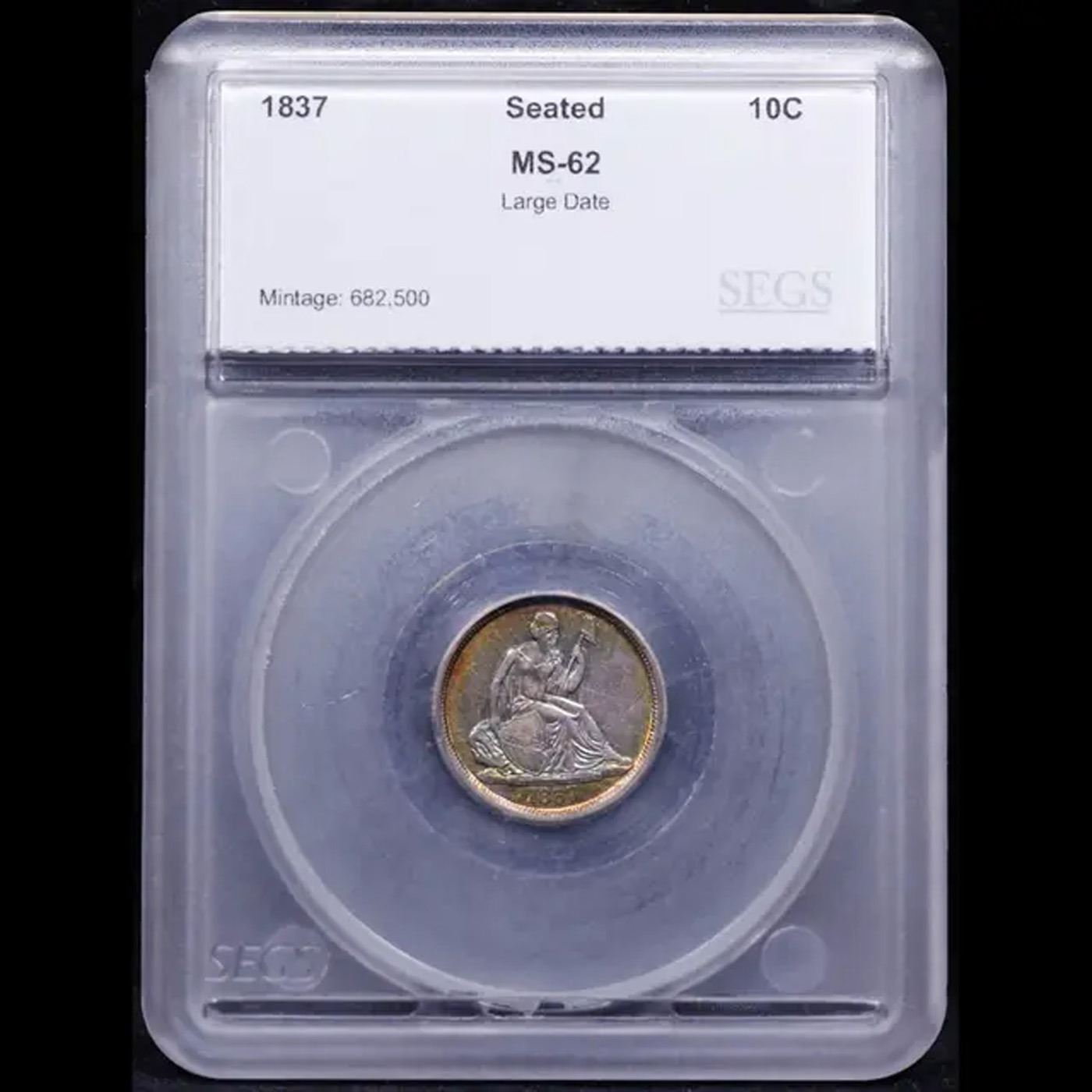 ***Auction Highlight*** 1837 Lg Date Seated Liberty Dime 10c Graded ms62 BY SEGS. A Key Date's Pick, Bid to Win, Don't let it get Away Coin