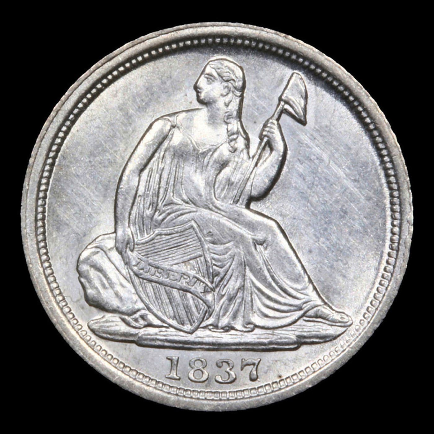 ***Auction Highlight*** 1837 No Stars, Small Date Seated Liberty Half Dime 1/2 10c Graded ms63 detai