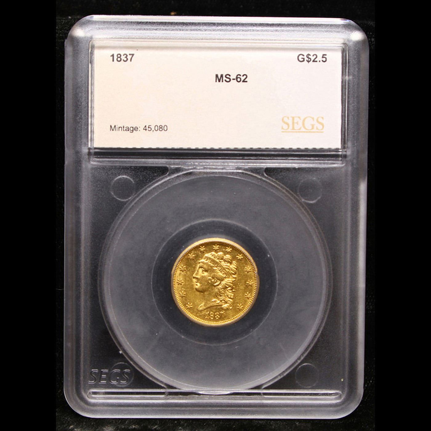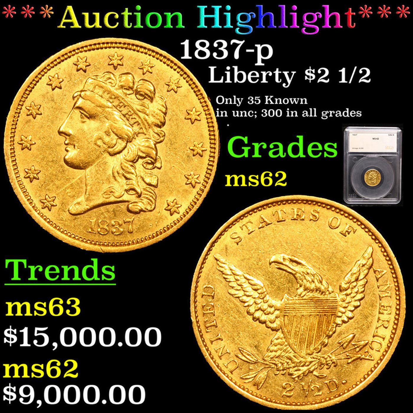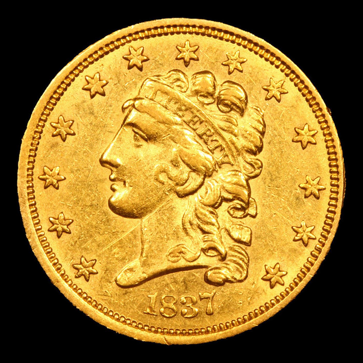 ***Auction Highlight*** 1837-p Classic Head $2 1/2 Quarter Eagle Gold Graded ms62 By SEGS.