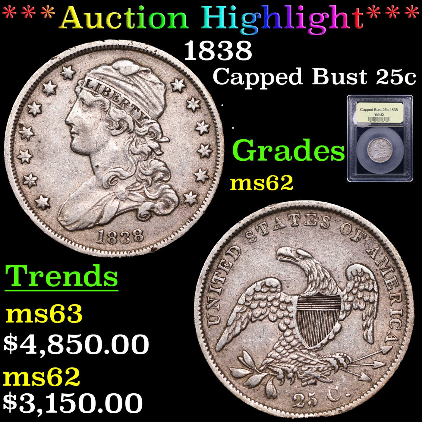 ***Auction Highlight*** 1838 Capped Bust Quarter 25c Graded Select Unc By USCG.