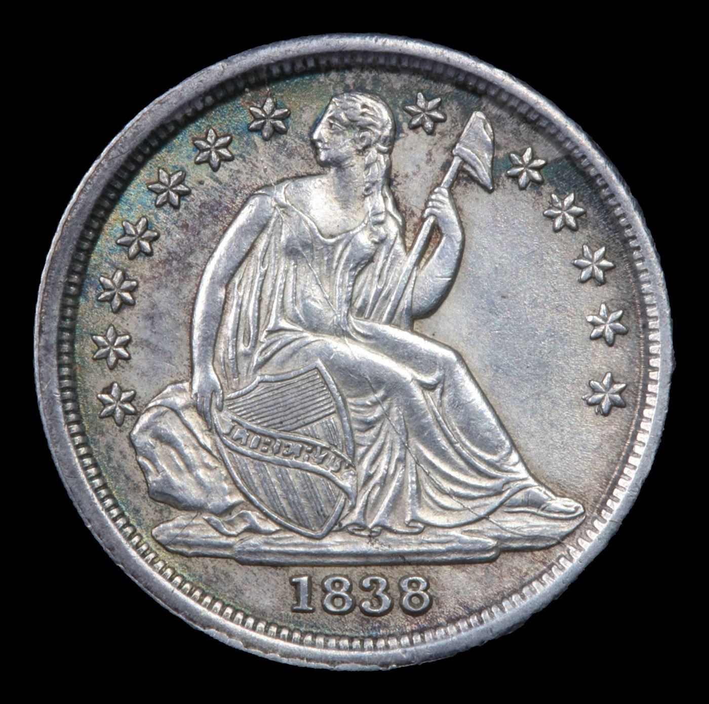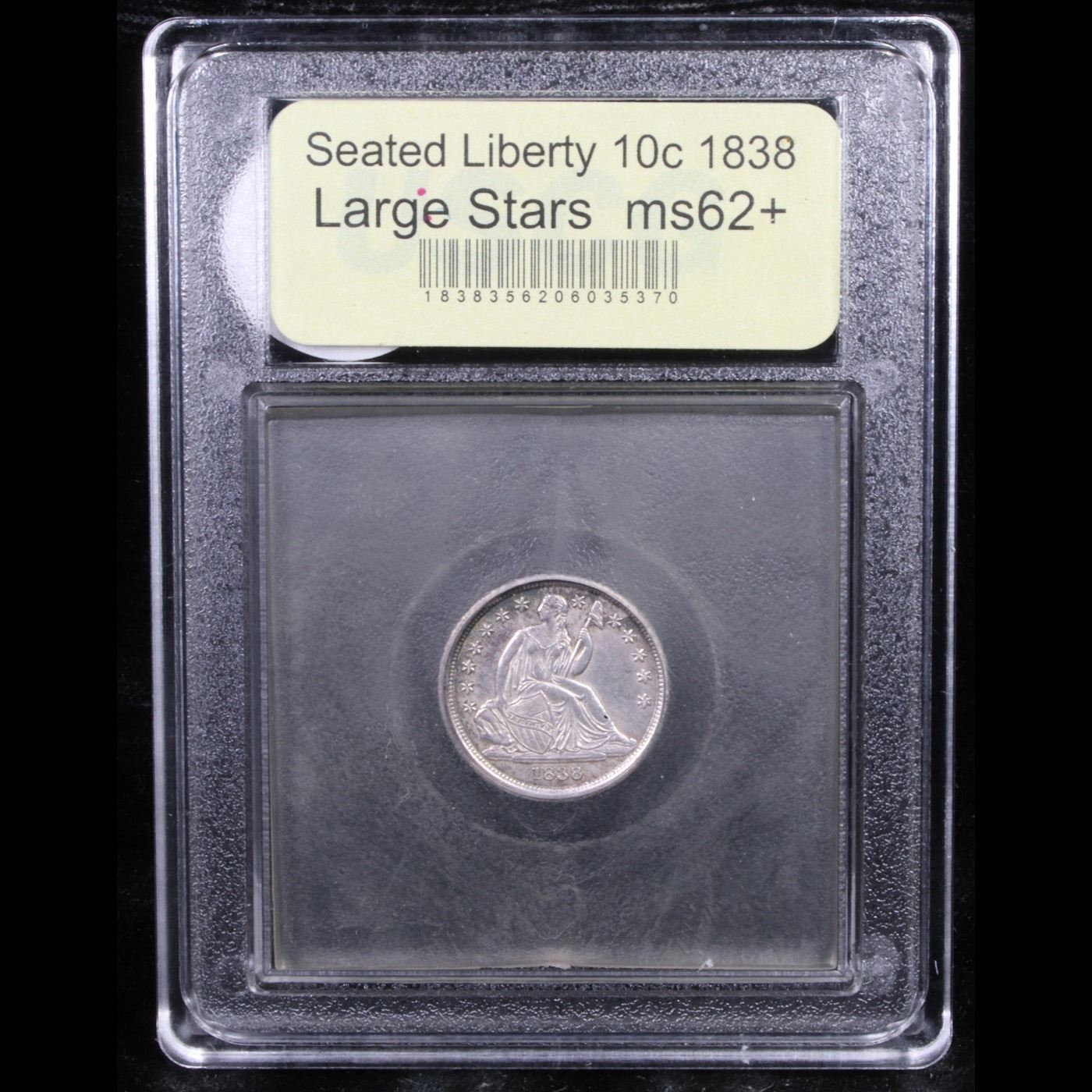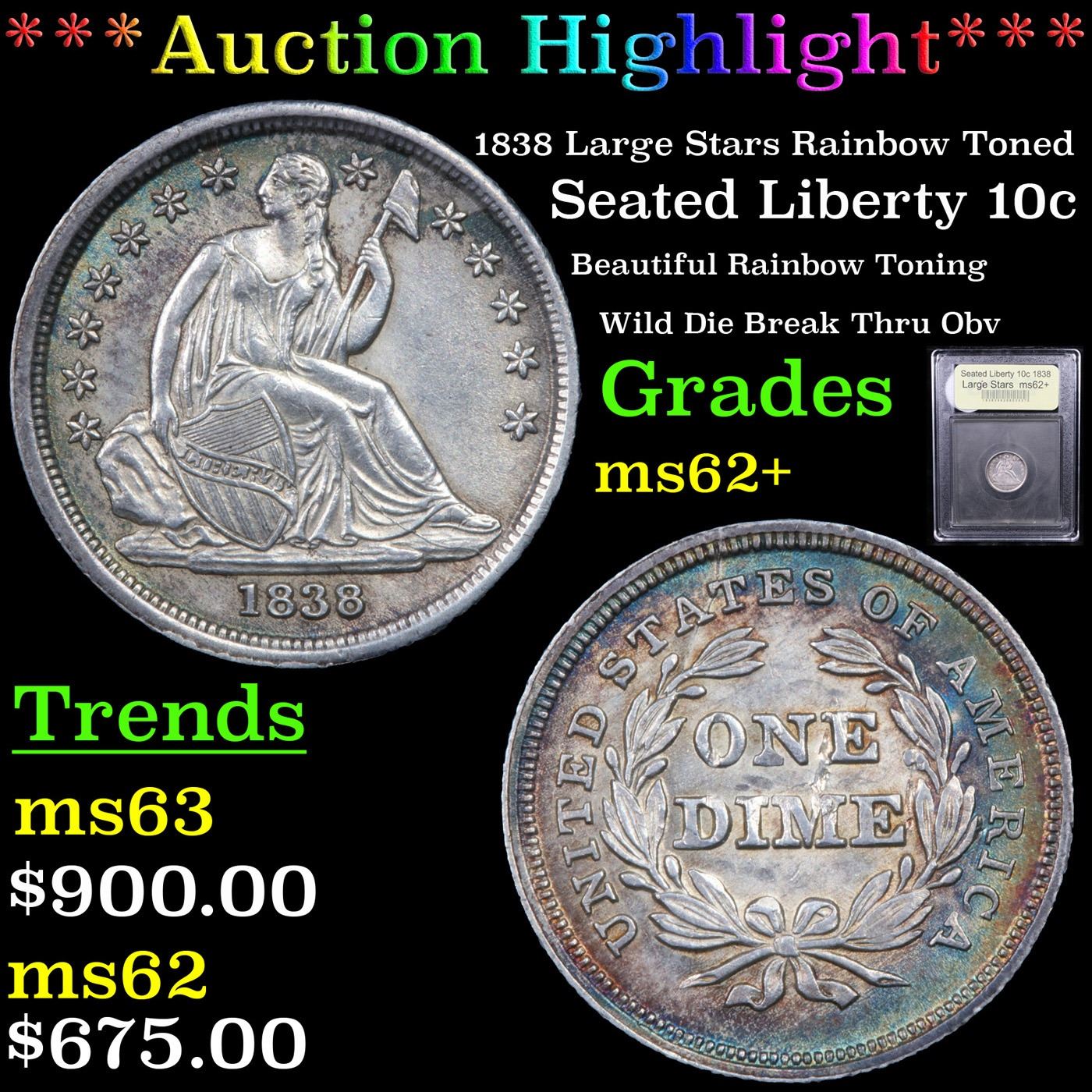 ***Auction Highlight*** 1838 Large Stars Rainbow Toned Seated Liberty Dime 10c Graded Select Unc BY USCG. A Corey's Pick, Bid to Win Coin