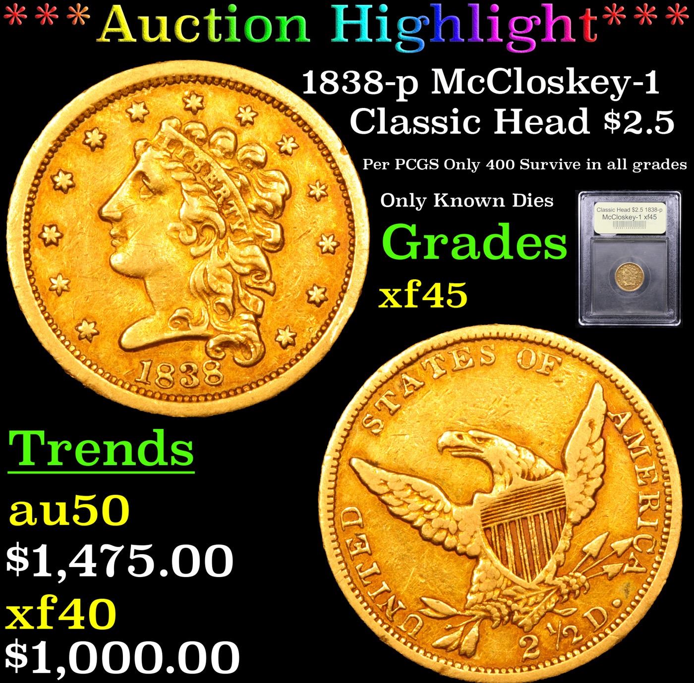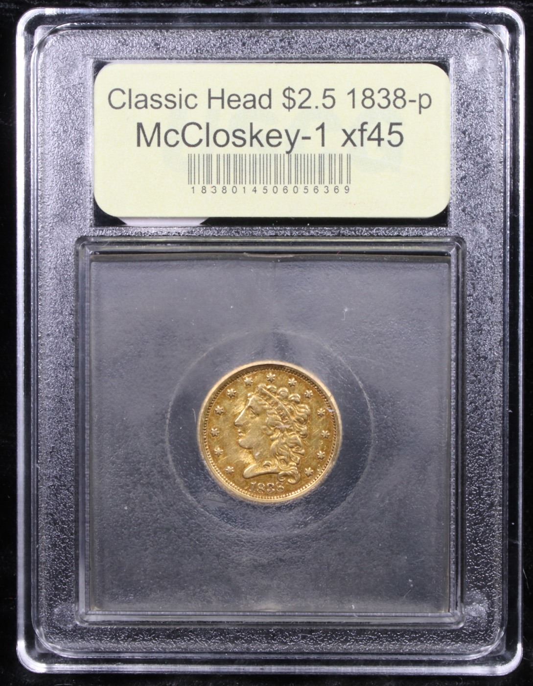 ***Auction Highlight*** 1838-p McCloskey-1 Classic Head Quarter Eagle Gold 2.5 Graded xf+ By USCG (f