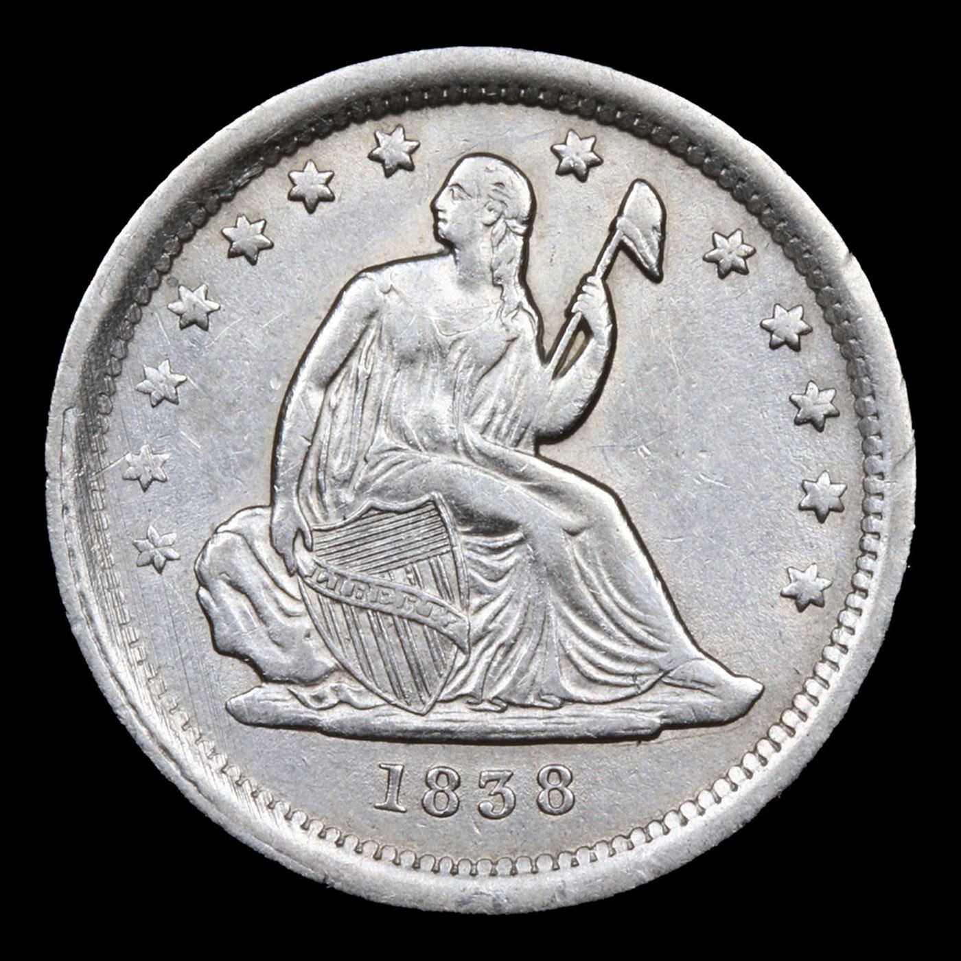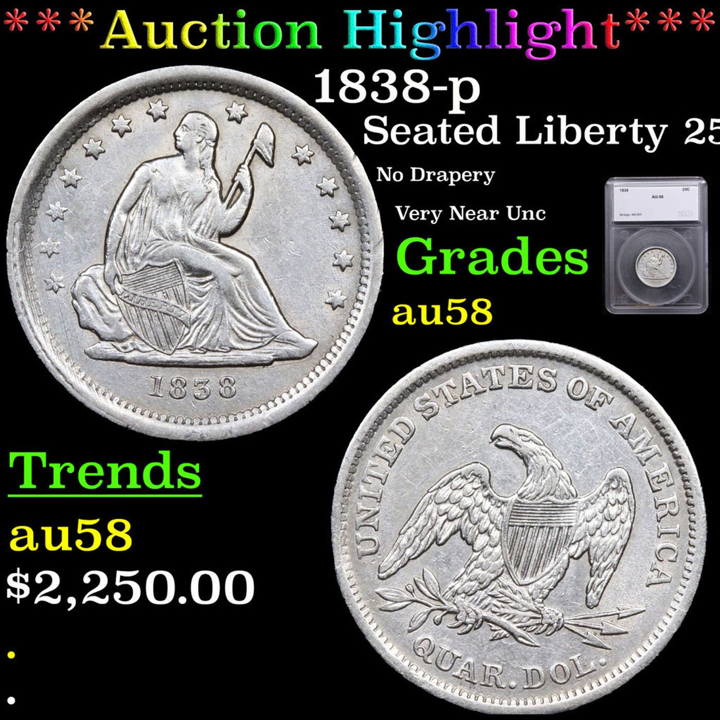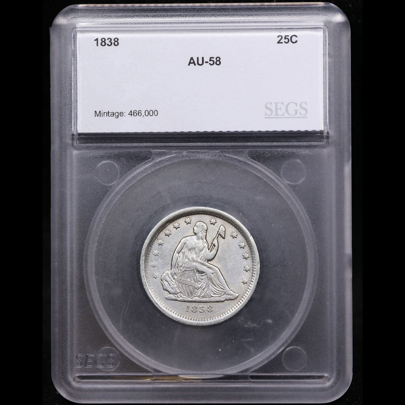 ***Auction Highlight*** 1838-p Seated Liberty Quarter 25c Graded au58 By SEGS.