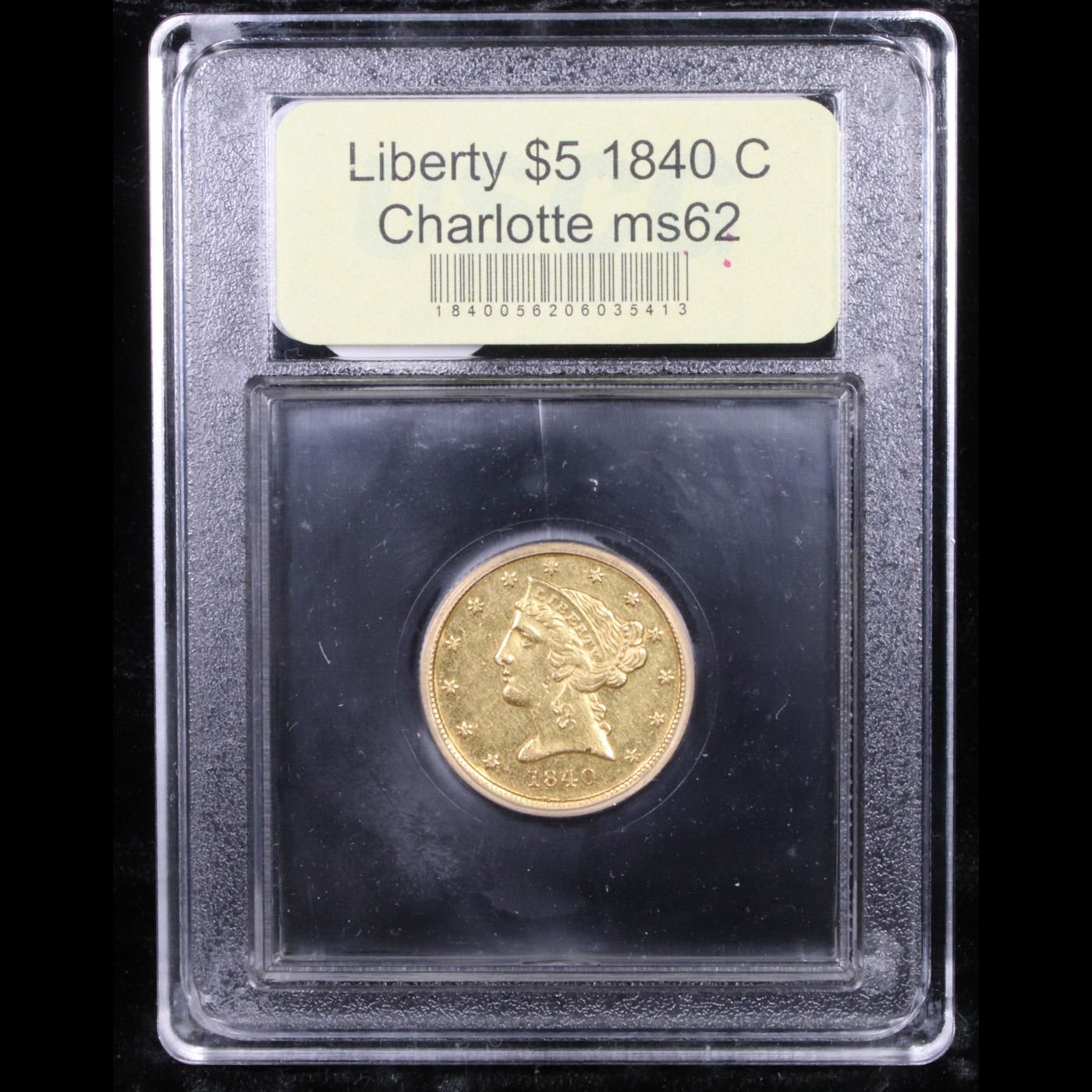 ***Auction Highlight*** 1840 C Charlotte Gold Liberty Half Eagle $5 Graded Select Unc By USCG. The vibrant sunshine-yellow patina of this piece is adorned by subtle notions of olive and amber hues in select areas. a satiny complexion that flirts with prooflike reflectivity on the Obverse and is Fully Prooflike on the reverse. The strike is satisfying for the issue, with just a trifle softness to Liberty's curls and the eagle's neck but proud definition elsewhere. Intense scrutiny with a glass reveals nothing in the way of major distractions. Several minute marks are scattered over each side. A truly attractive and satisfying jewel. 1840 marked the introduction of Christian Gobrecht's Liberty design type to the quarter eagle series, ensuring that examples struck at each of the four operating mints that year would eventually see perpetual demand from collectors. The Charlotte Mint, opened just two years prior in 1838, struck 12,822 quarter eagles, rivaling the 18,859 examples struck by the central mint in Philadelphia that year. The 1840-C issue saw extensive regional circulation and very few examples remain for collectors today. Of an extant population of perhaps 150 pieces total, is it though that less than ten survive in Mint State, stressing the significance and immense desirability of the present offering. A Corey's Pick, Bid to Win, Don't let it get Away, you might not find its equal Coin. I give this coin my highest recommendation