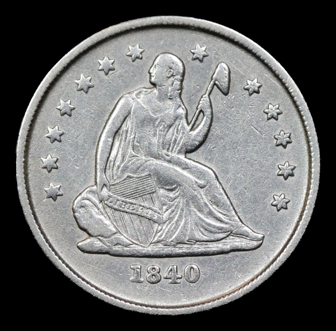 ***Auction Highlight*** 1840-o No Drapery . . Seated Liberty Quarter 25c Graded Select AU By USCG.