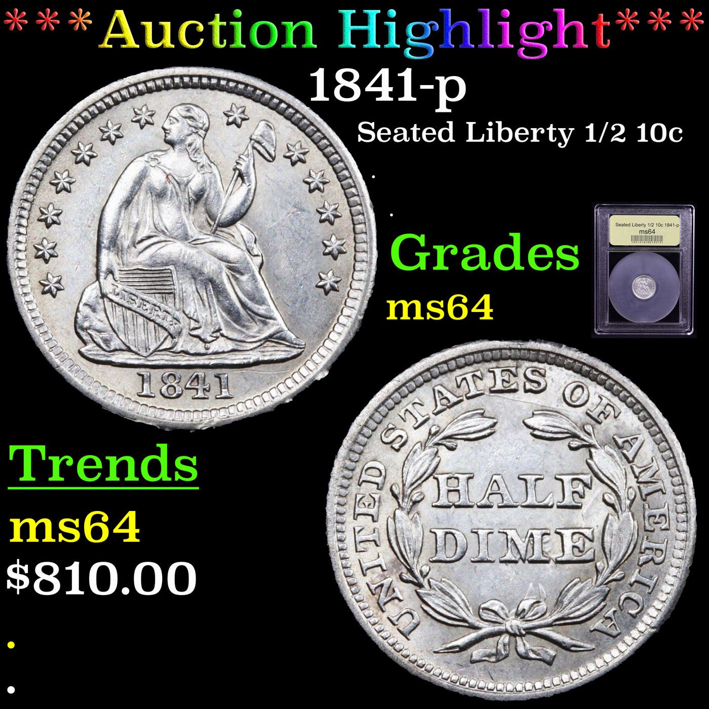 ***Auction Highlight*** 1841-p Seated Liberty Half Dime 1/2 10c Graded Choice Unc By USCG (fc)