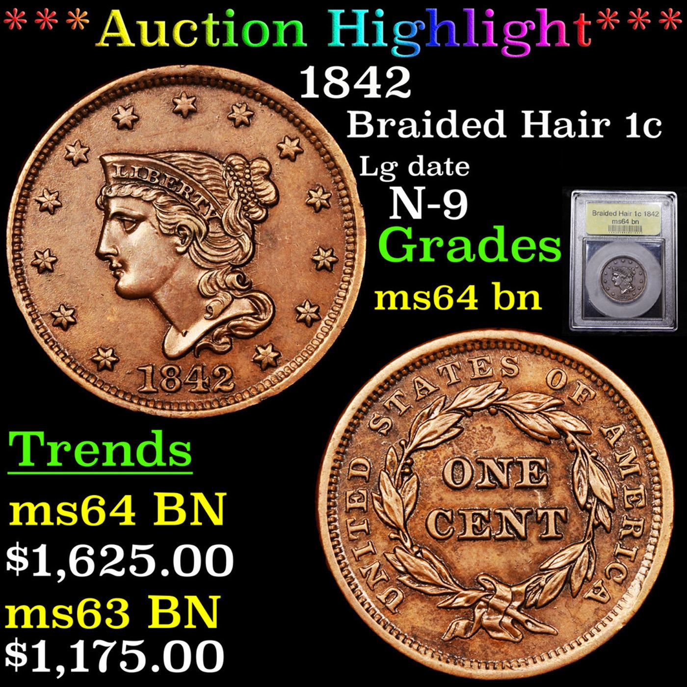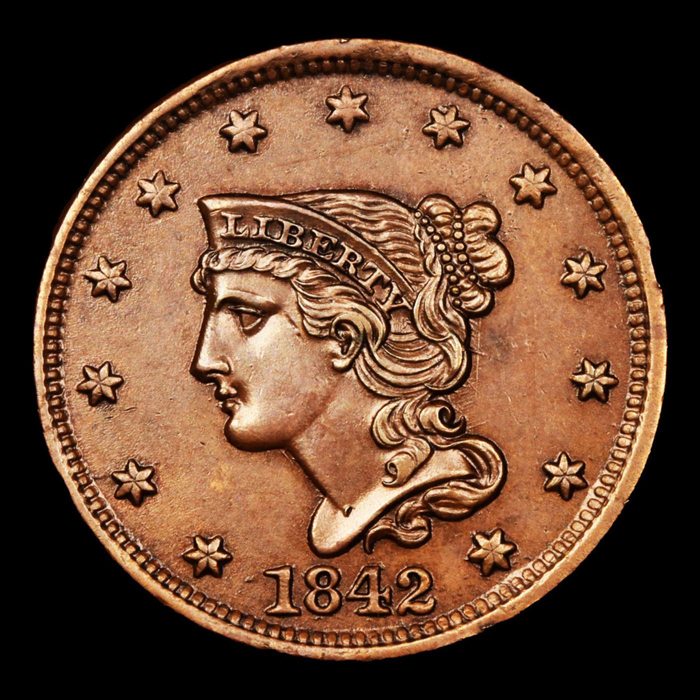 ***Auction Highlight*** 1842 Braided Hair Large Cent 1c Graded Choice Unc BN By USCG (fc)