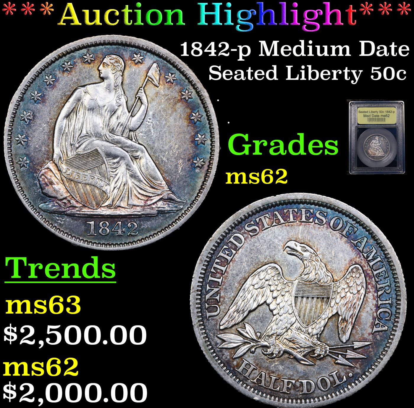 Key Date Coins does guarantee the authenticity of all coins being auctioned, but in no way guarantees the condition or grade of any coin being auctioned regardless of any subjective opinion put forth by Key Date Coins. It is the buyer’s sole responsibility to be the judge of the coins grade/condition by the pictures/video provided. Buyers are further encouraged to contact Key Date Coins with any questions prior to the start of the auction.